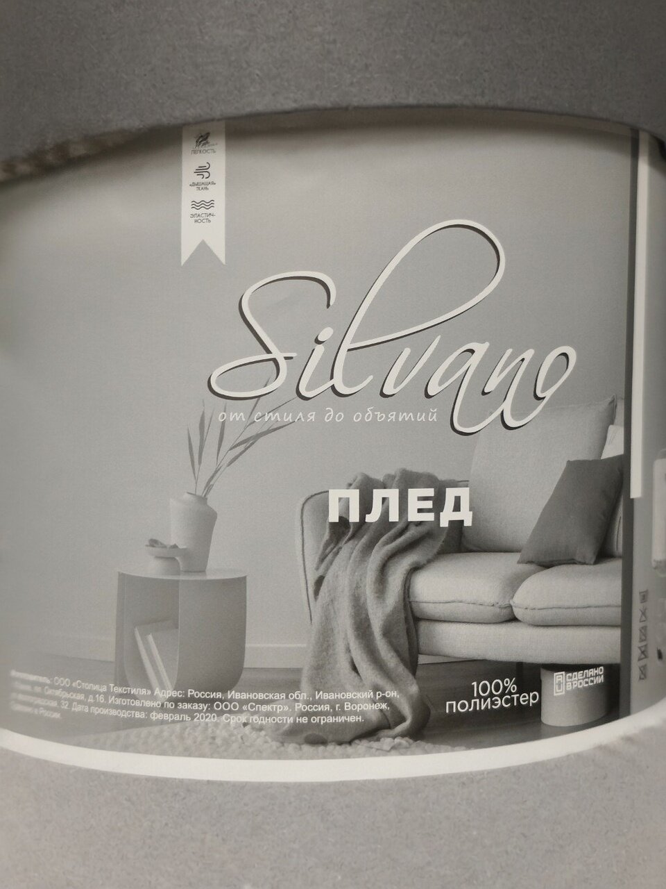 Плед евро Silvano имеет размер 200х220 см — это оптимально для двуспальных и евро-кроватей, а также для укрытия дивана или использования как покрывало.