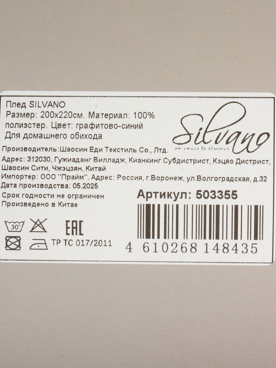 Плед 200*220 см, микрофибра, 100%пэ, 280г, Silvano, Сильвия, графитово-синий