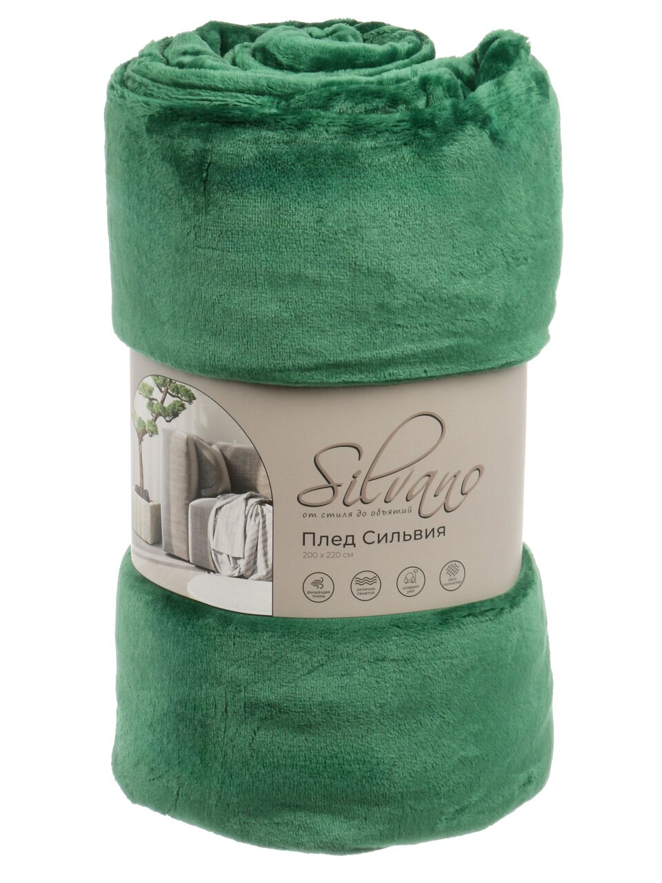 Плед 200*220 см, микрофибра, 100%пэ, 280г, Silvano, Сильвия, зеленый