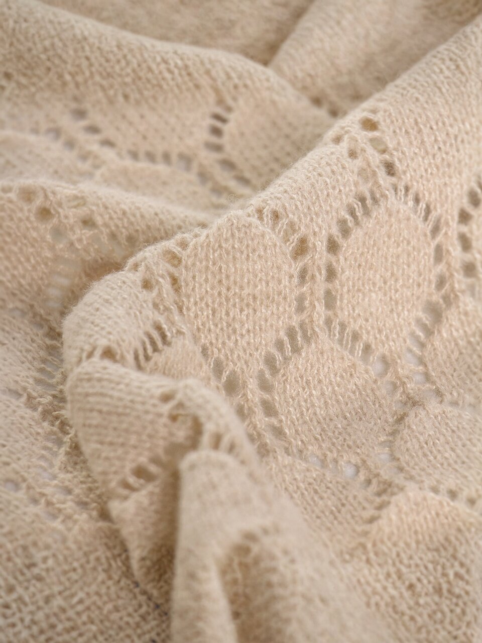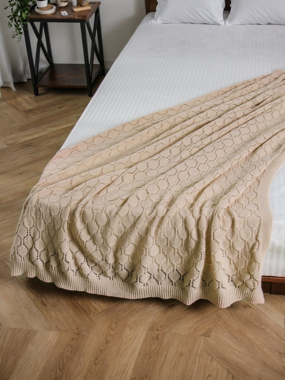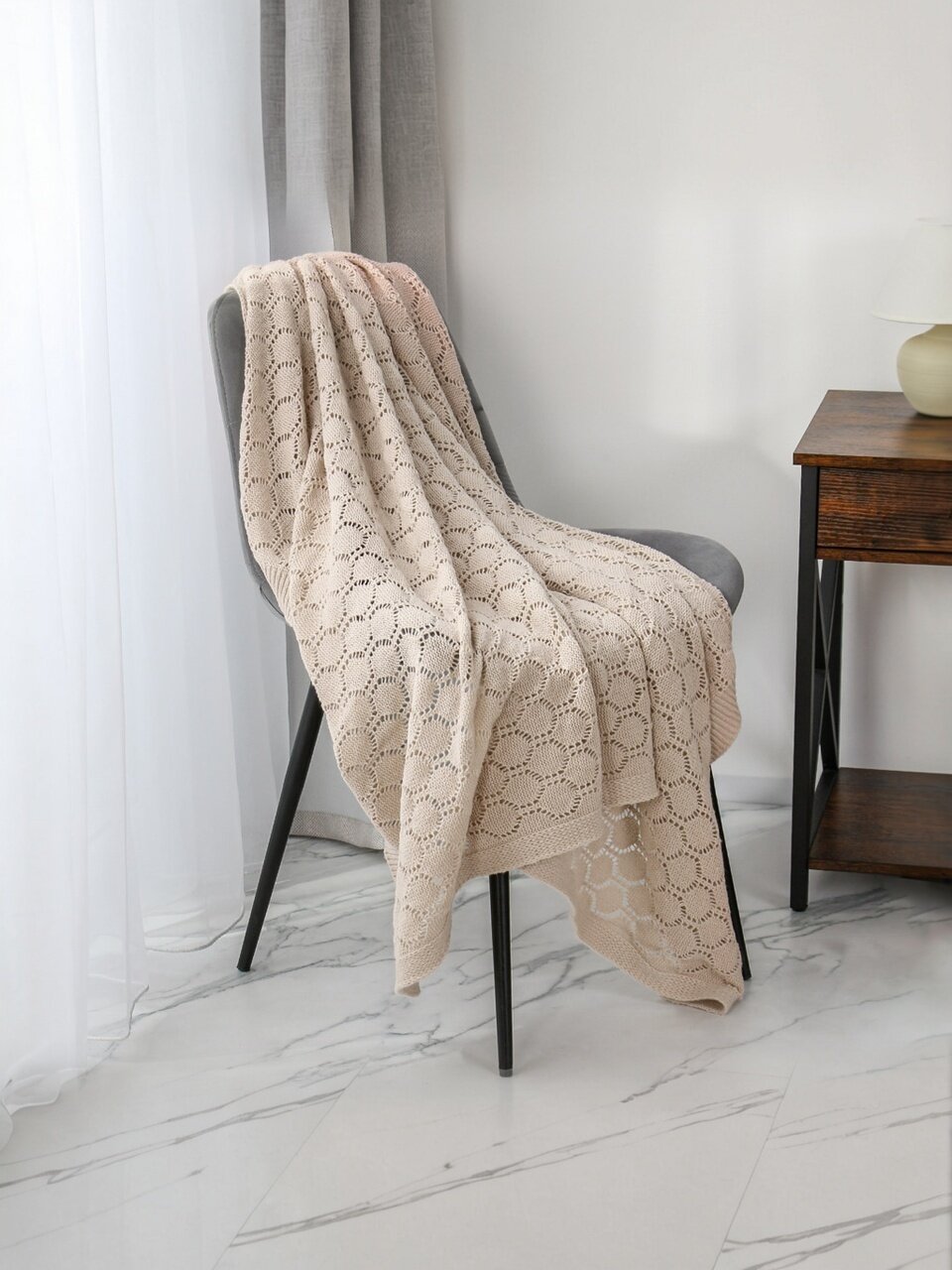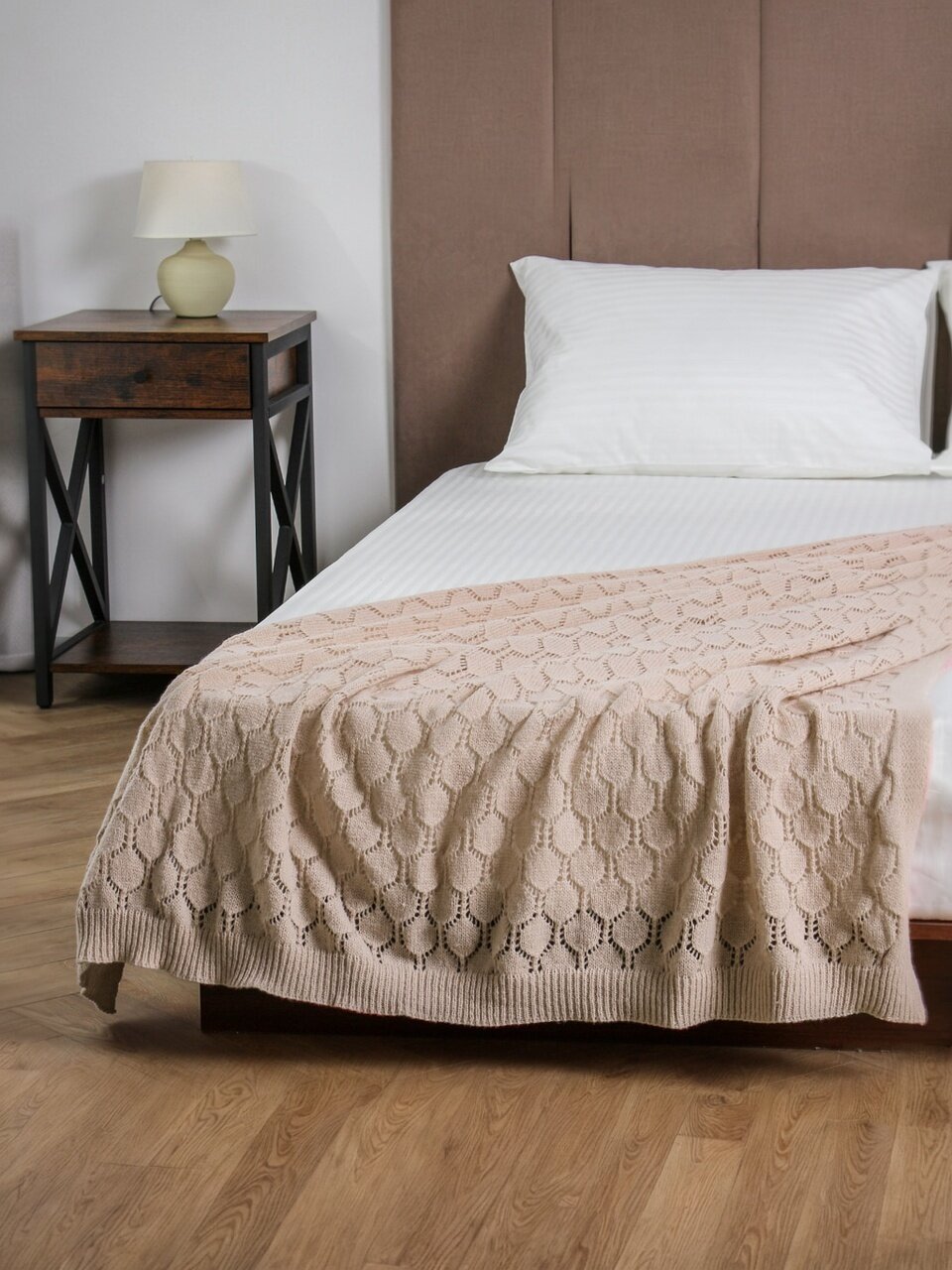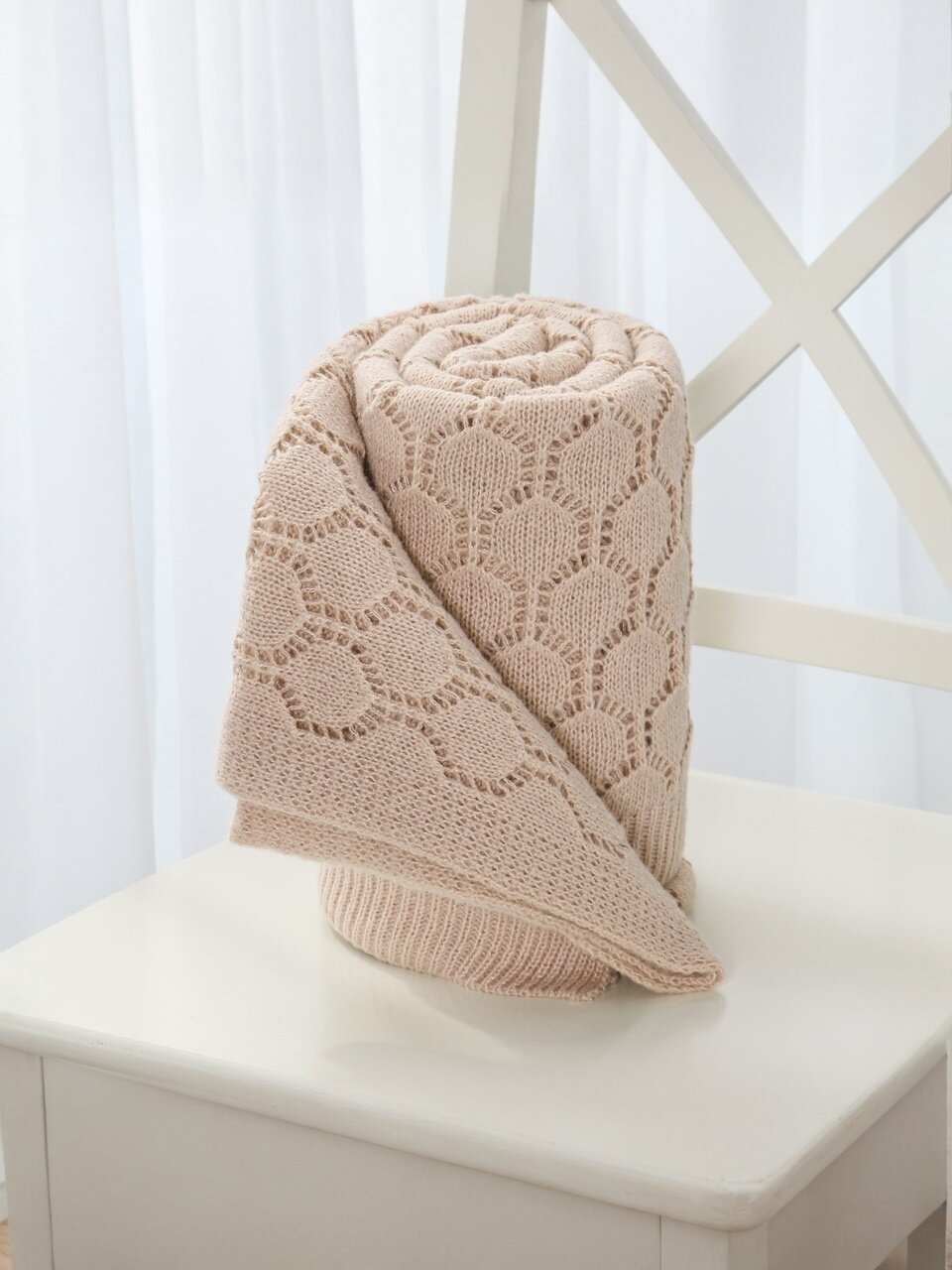 - Вязаная фактура и бежевый цвет создают атмосферу уюта и стиля в любом интерьере.