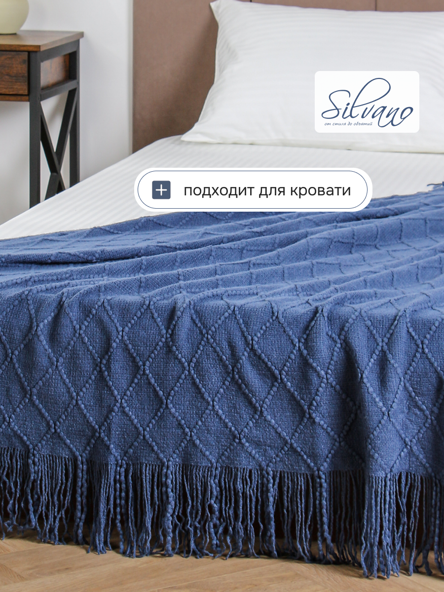 - Уникальное предложение: плотный вязаный плед с бахромой, сочетающий трендовый тёмно-синий цвет и универсальность для любого интерьера.