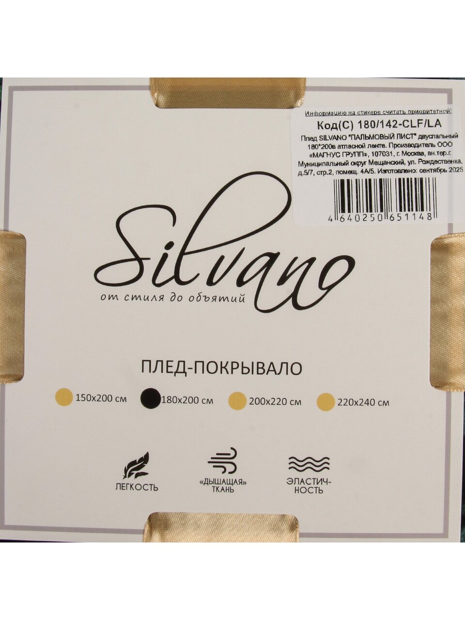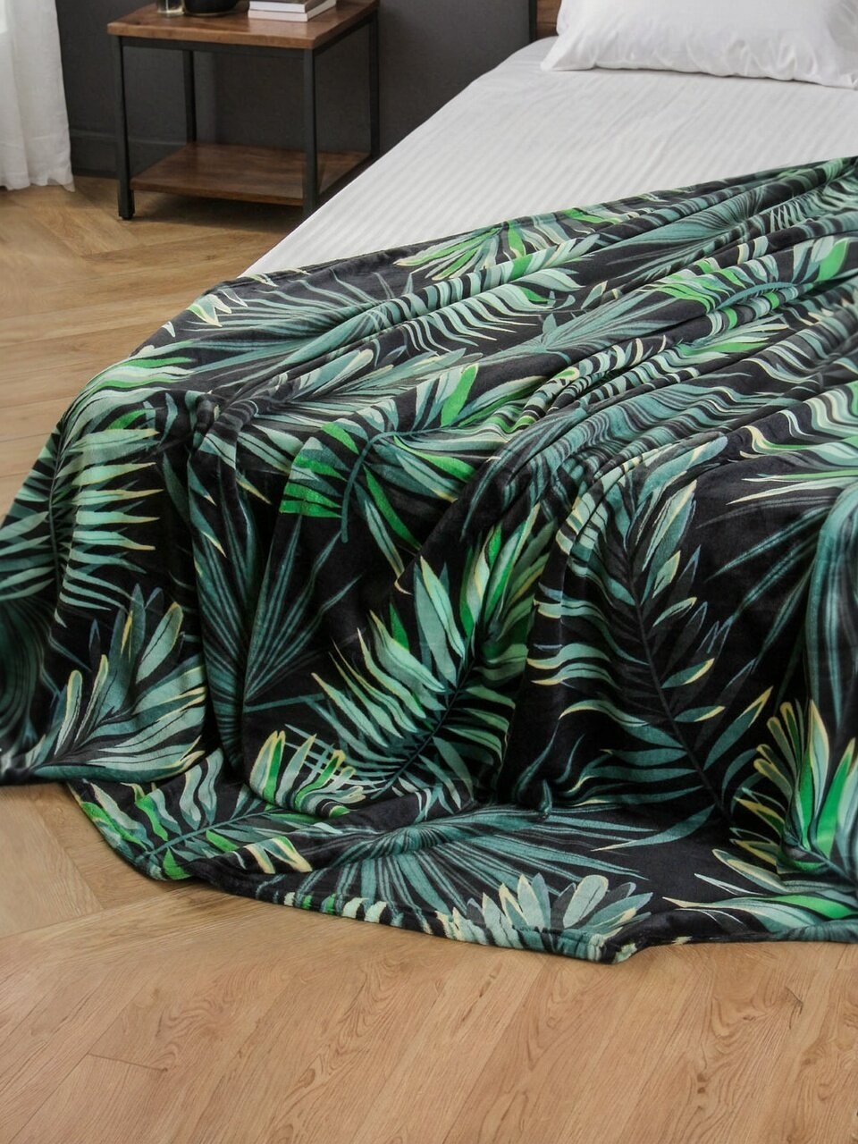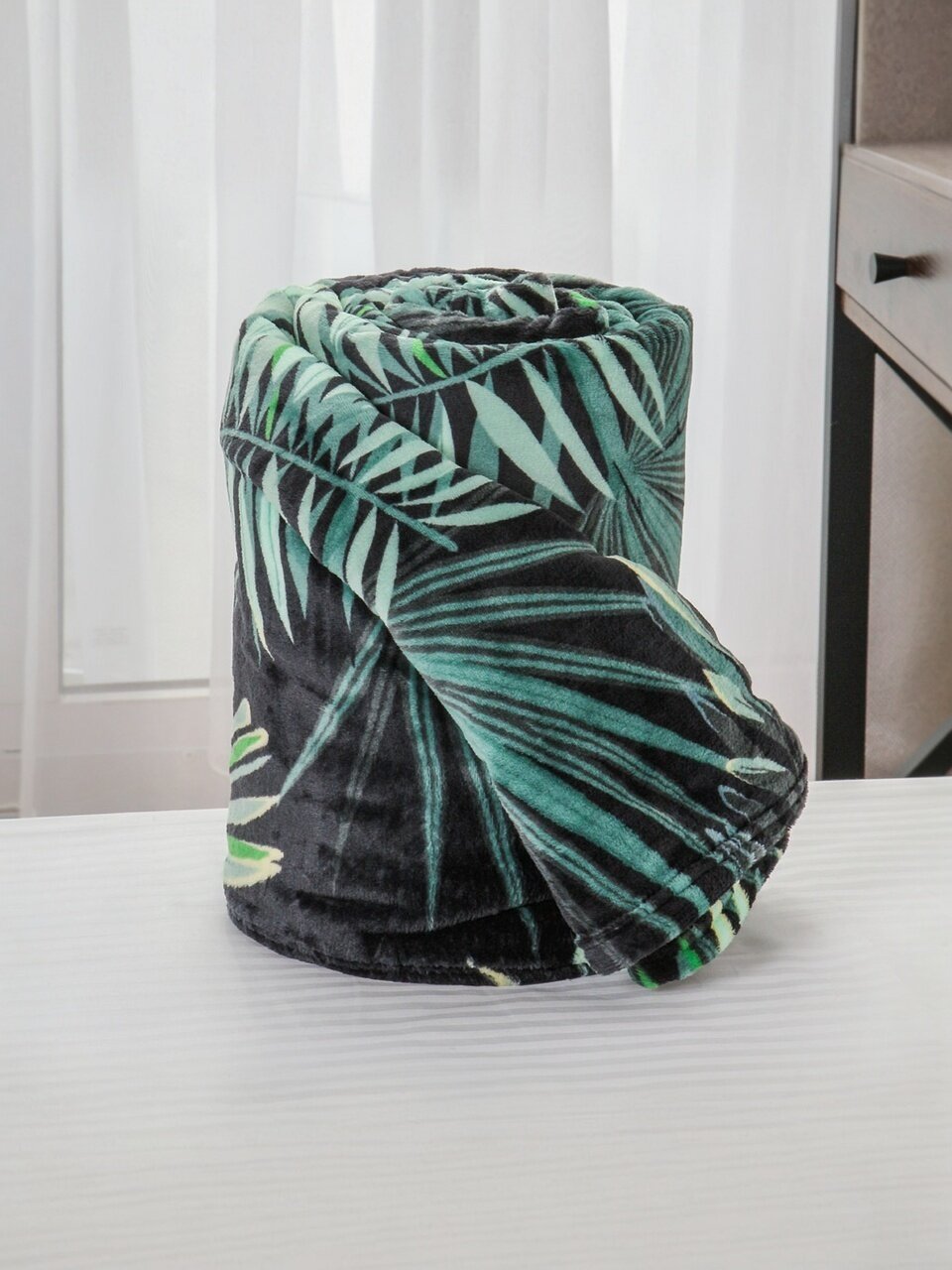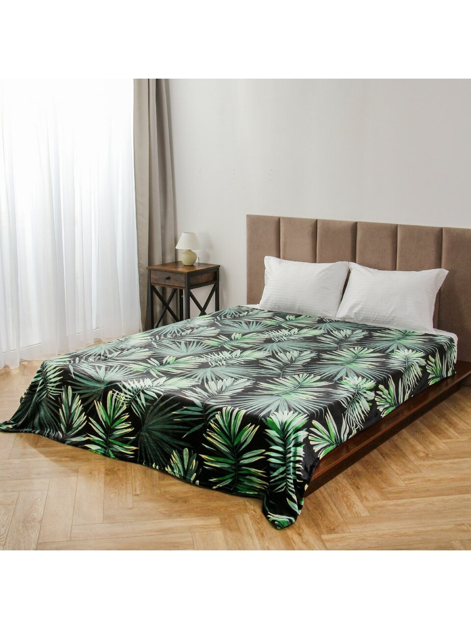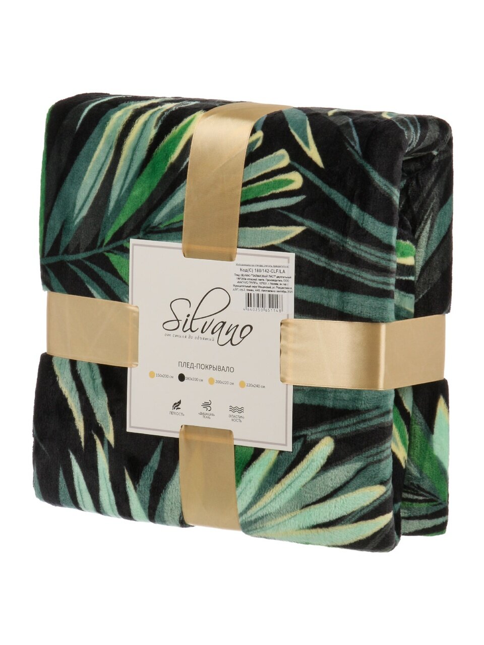 Плед 2-спальный, 180х200 см, велсофт жаккард, 100% полиэстер, Silvano, Пальмовый лист, зеленый, 180/142-CLF/LA