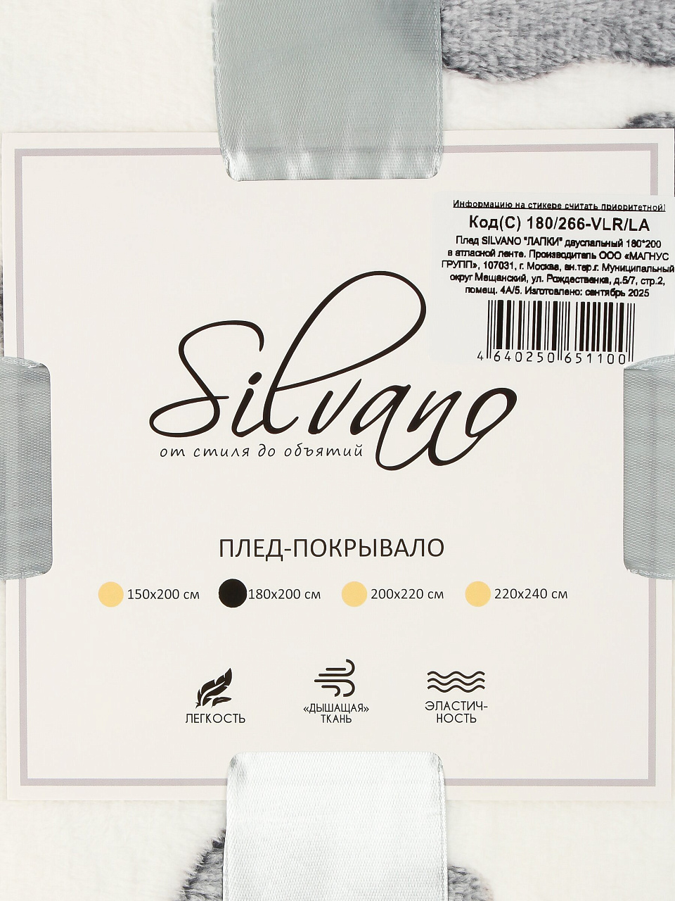 Вы можете приобрести «Плед 2-спальный, 180х200 см, велсофт жаккард, 100% полиэстер, Silvano, Животные Лапки, 180/266-VLR/LA» и другие товары в нашем интернет-магазине в Смоленске по низким ценам и с бесплатным самовывозом.
