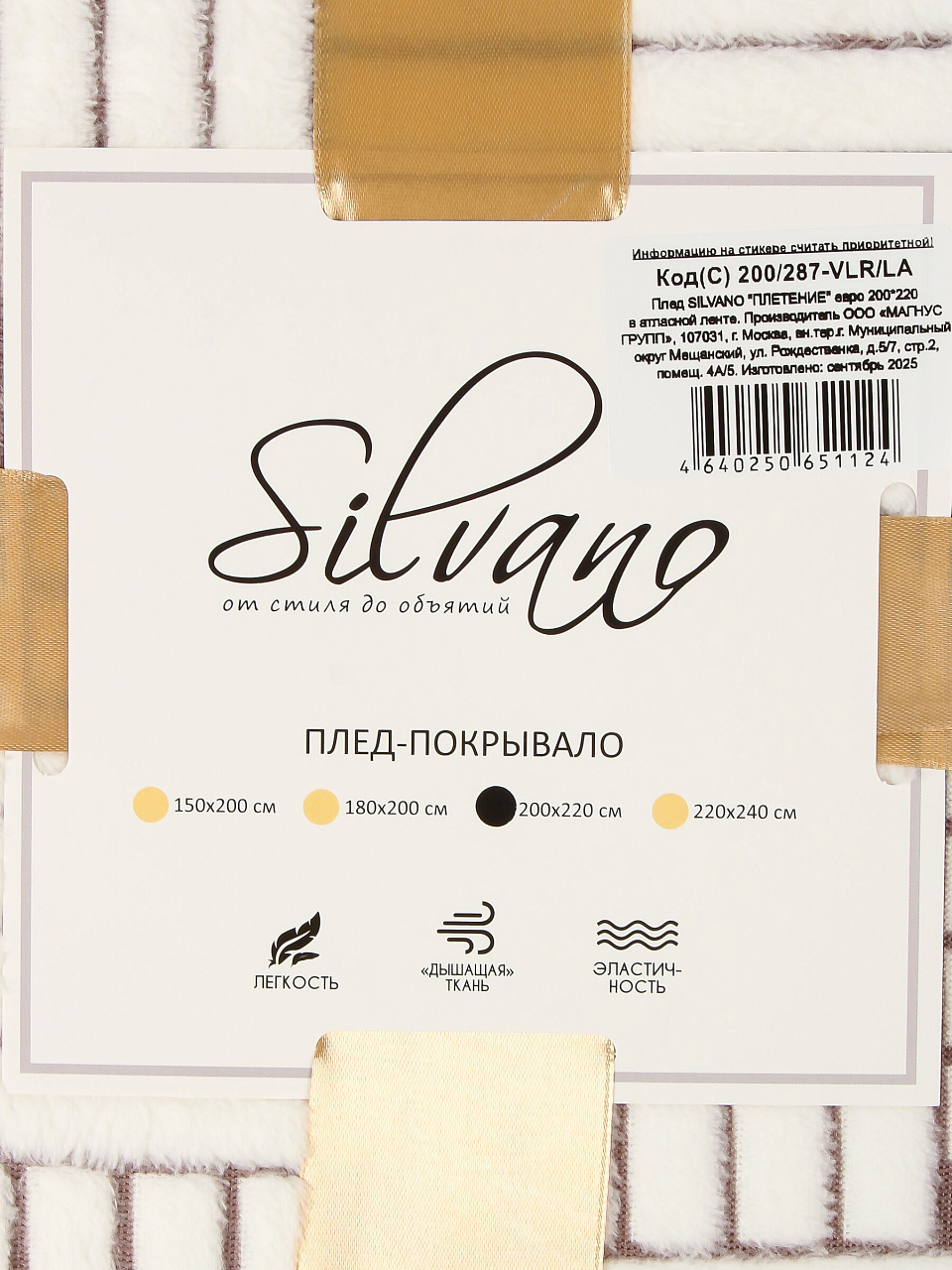 В отличие от аналогов с натуральным составом, плед Silvano не требует сложного ухода: его можно стирать при 30-40 градусах, он быстро сохнет и сохраняет форму. Для тех, кто ищет, чем отличается велсофт жаккард от других тканей, — это более выраженная фактура, лёгкость и устойчивость к деформации. Плед не стеганый, не двусторонний, что облегчает уход и делает его универсальным для разных сценариев — будь то уютный вечер на даче или стильное покрывало в квартире.