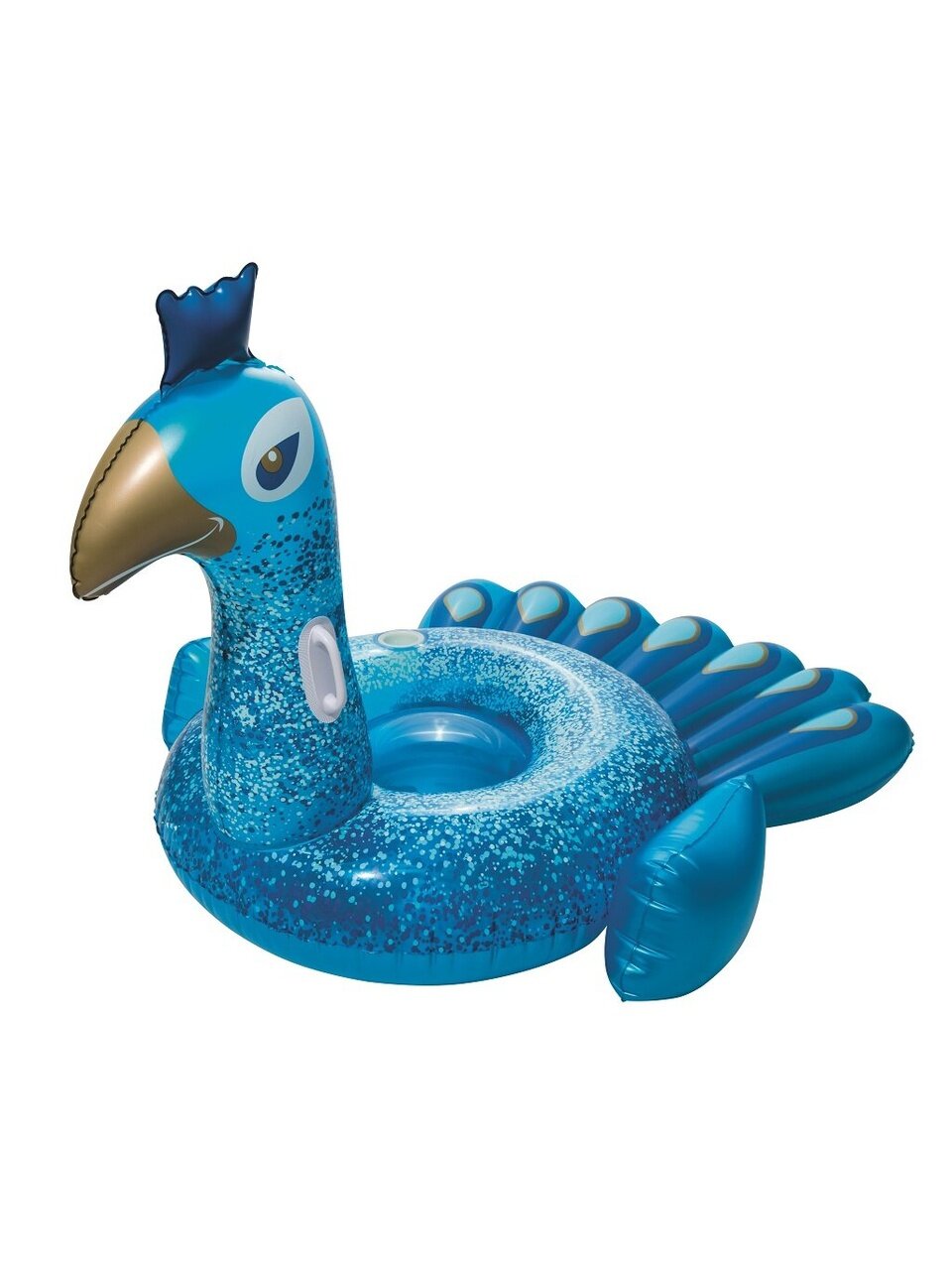 Bestway 41101 – надувной плот, выполненный в виде красивого голубого павлина. Он имеет внушительные габариты и способен выдерживать нагрузку до 90 кг. Для удобства отдыхающих предусмотрен подстаканник и 2 ручки, за которые можно держаться. Толщина стенок составляет 0,45 мм. На надувном павлине можно удобно расположиться и плавать, загорая на солнце.