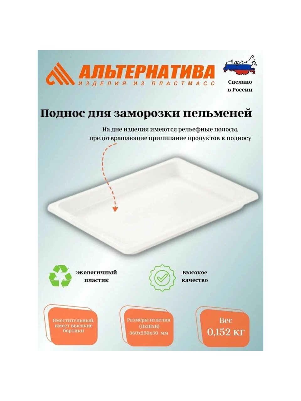 Ищете, какой поднос выбрать для заморозки пельменей? Модель Альтернатива М5230 — это пластиковый прямоугольный поднос с высокими бортиками, который идеально подходит для аккуратной заморозки домашних полуфабрикатов. Благодаря среднему размеру (36х25 см) такой поднос легко помещается даже в небольшую морозильную камеру, а пластик не впитывает влагу и запахи, что важно при длительном хранении продуктов.