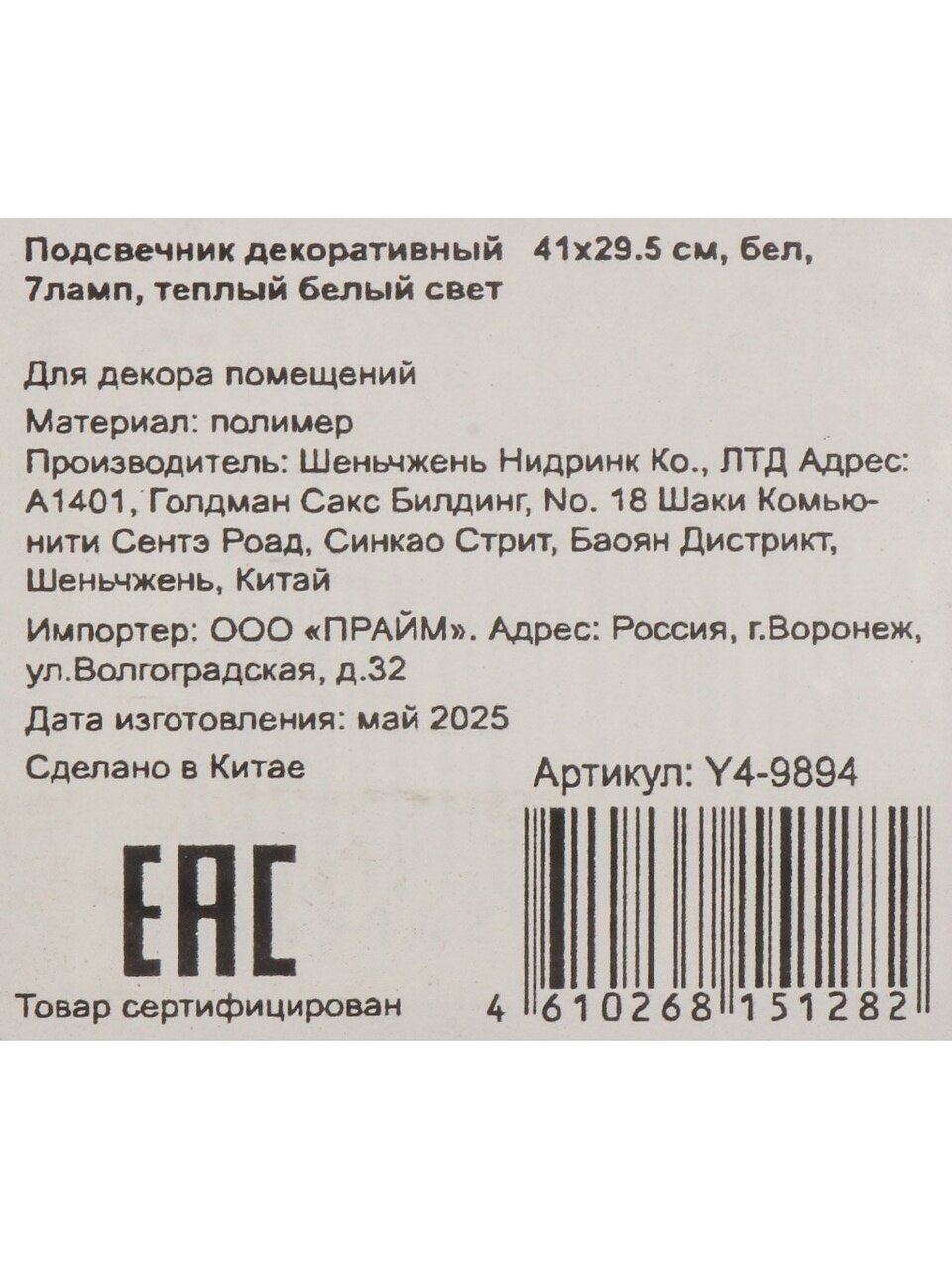 Вы можете приобрести «Подсвечник декоративный пластик, 41х29.5 см, белый, 7 ламп, белый теплый свет, Y4-9894» и другие товары в нашем интернет-магазине в Клинцах по низким ценам и с бесплатным самовывозом.