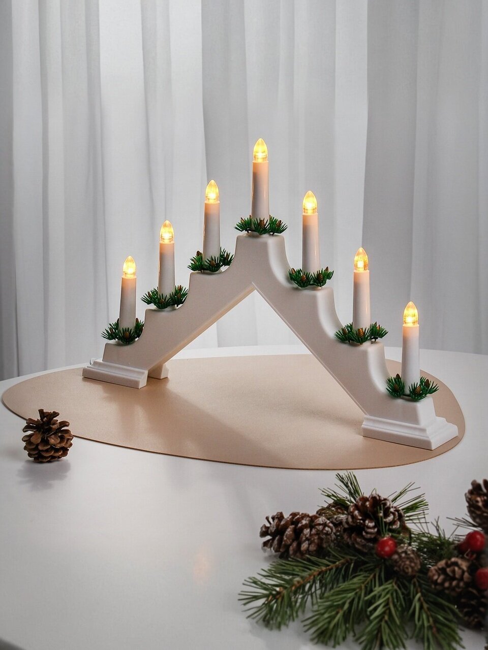 Стильный декоративный подсвечник из пластика 41х29,5 см: уютный белый теплый свет, 7 ламп, безопасное украшение для дома и дачи без хлопот с огнем.