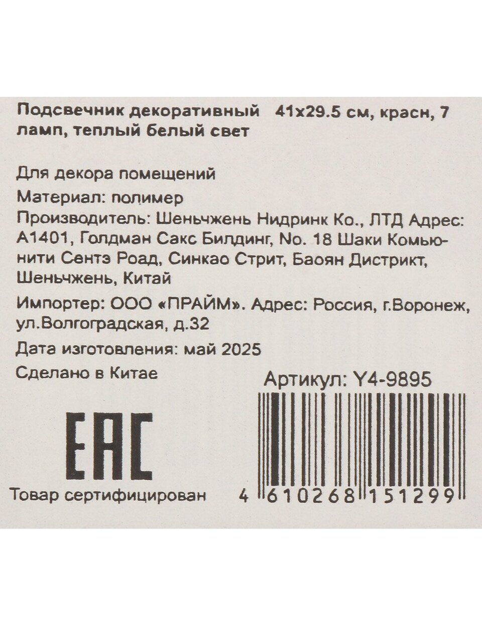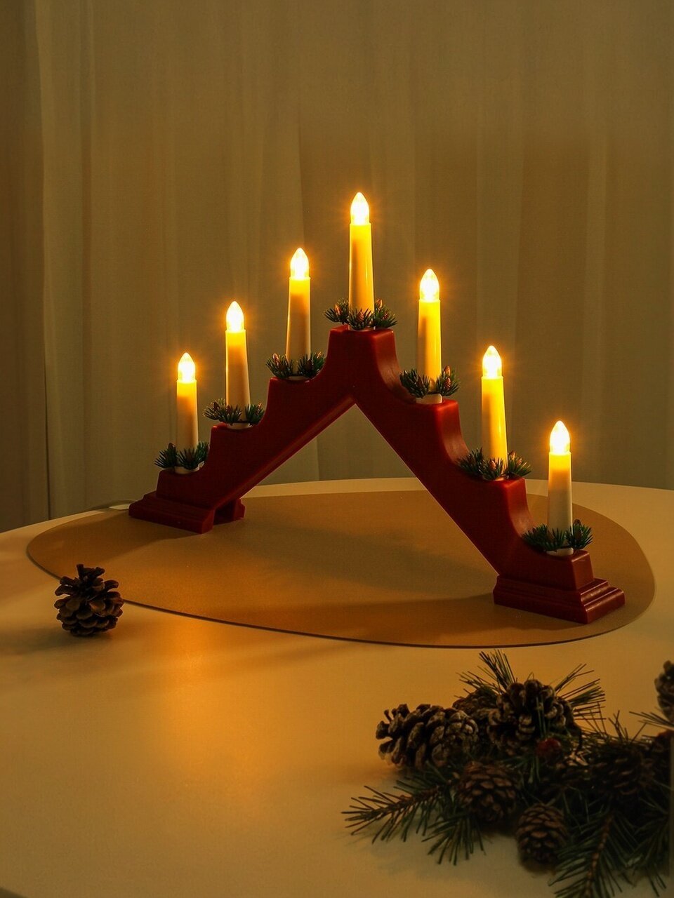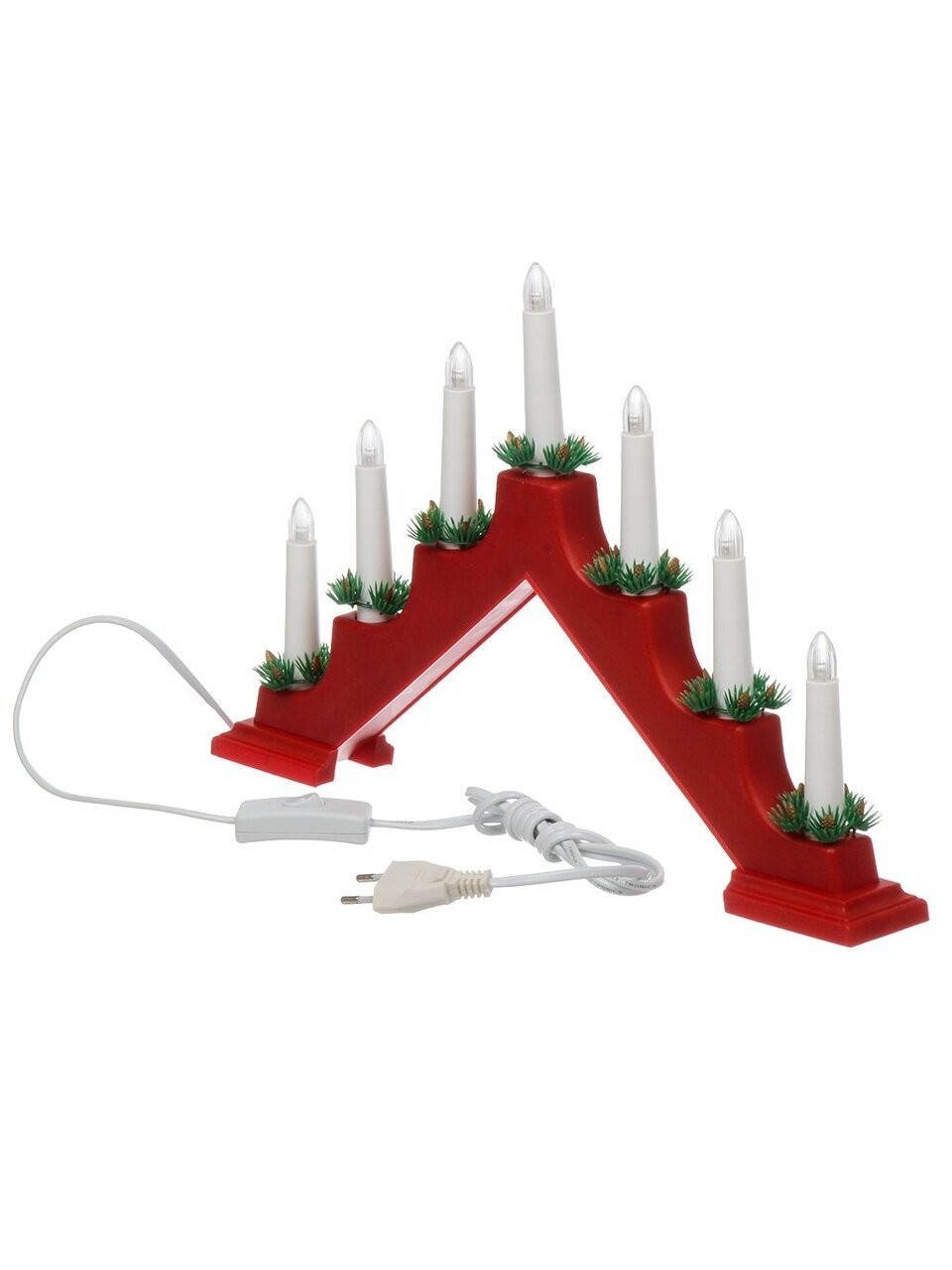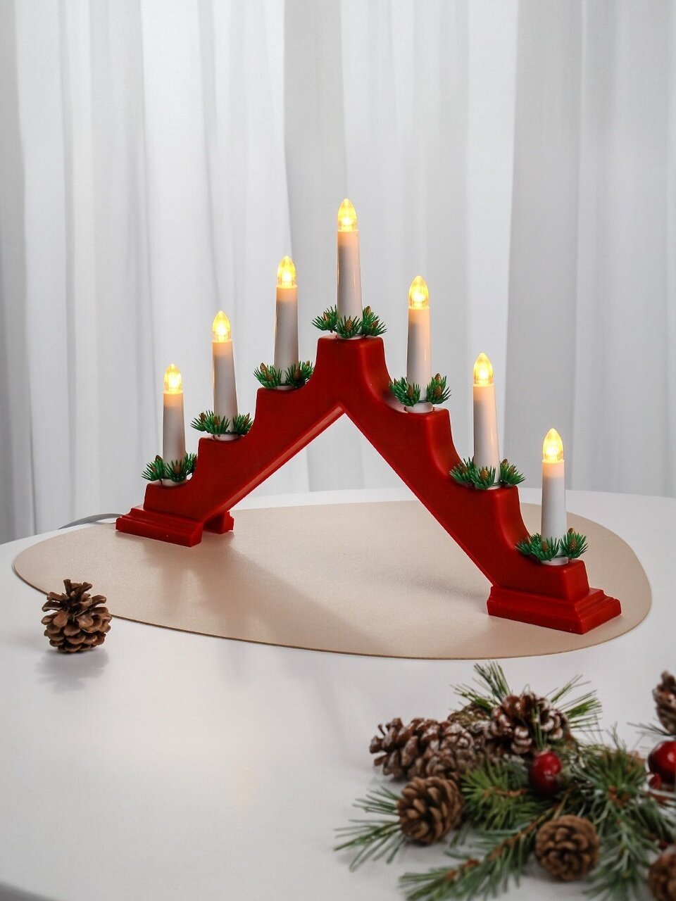 Подсвечник декоративный пластик, 41х29.5 см, красный, 7 ламп, белый теплый свет, Y4-9895