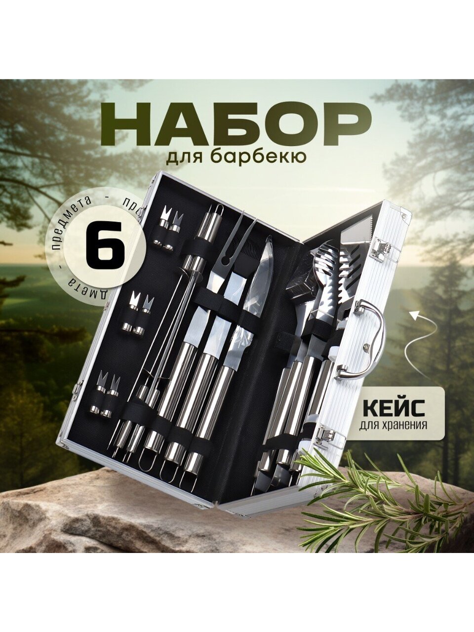 Набор для барбекю создан для готовки на открытом воздухе с использованием углей или костра. В него входят разнообразные инструменты и аксессуары, обеспечивающие удобство и безопасность при приготовлении пищи на природе. Этот комплект станет отличным помощником для тех, кто предпочитает активный отдых, кемпинг или просто пикники.