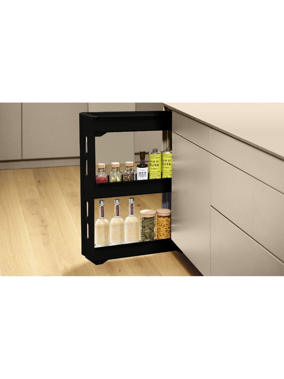 Полка Keeplex Black оснащена тремя секциями, что позволяет удобно разместить на ней различные предметы — от книг и документов до декоративных элементов. Ее конструкция на колесах обеспечивает легкость перемещения, а вентилируемая поверхность способствует сохранению свежести вещей. Разборная конструкция делает сборку и разборку полки простой и быстрой, что особенно удобно при переезде или изменении обстановки.