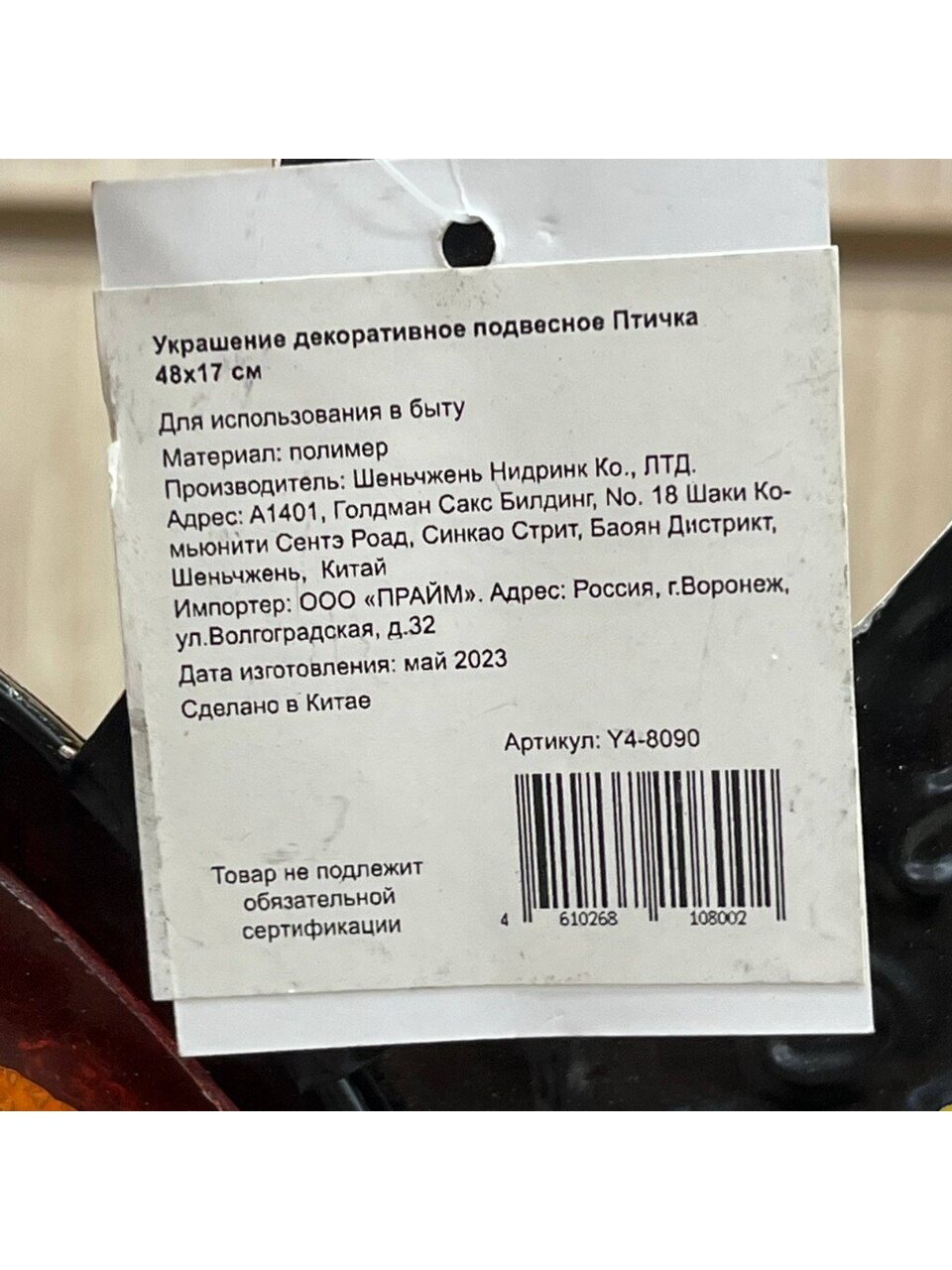 Вы можете приобрести «Украшение декоративное 48х17 см, подвесное, Птичка, Y4-8090» и другие товары в нашем интернет-магазине в Шахтах по низким ценам и с бесплатным самовывозом.