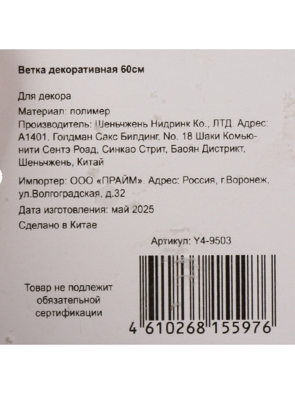 Какой размер у ветки декоративной Y4-9503?