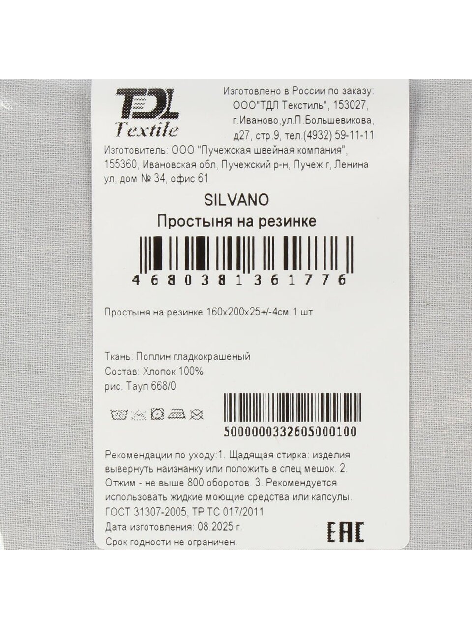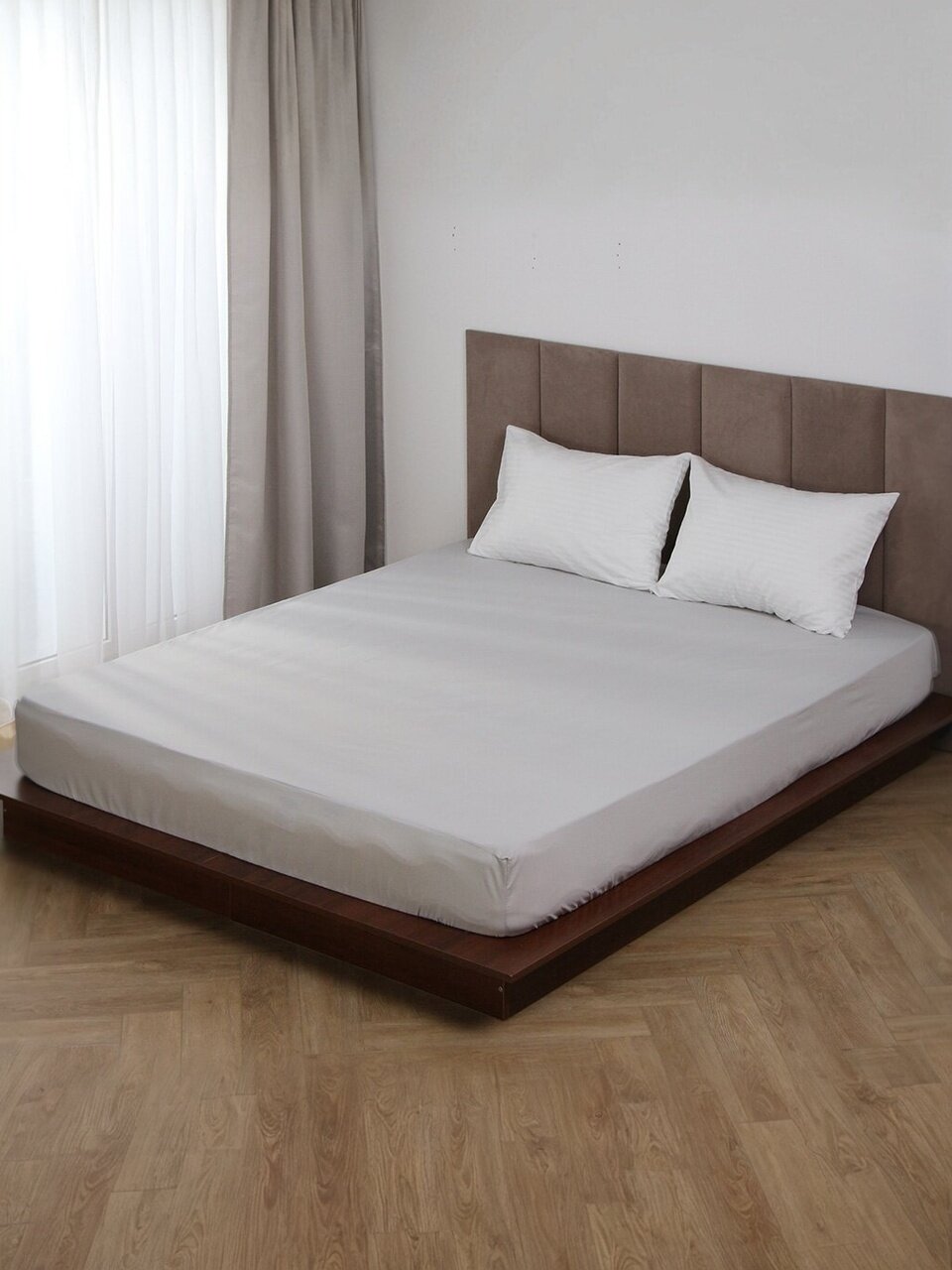 Простыня 2-спальная, 160 х 200 х 25 см, 100% хлопок, поплин, на резинке, Silvano, Тауп - фото 1 от пользователя