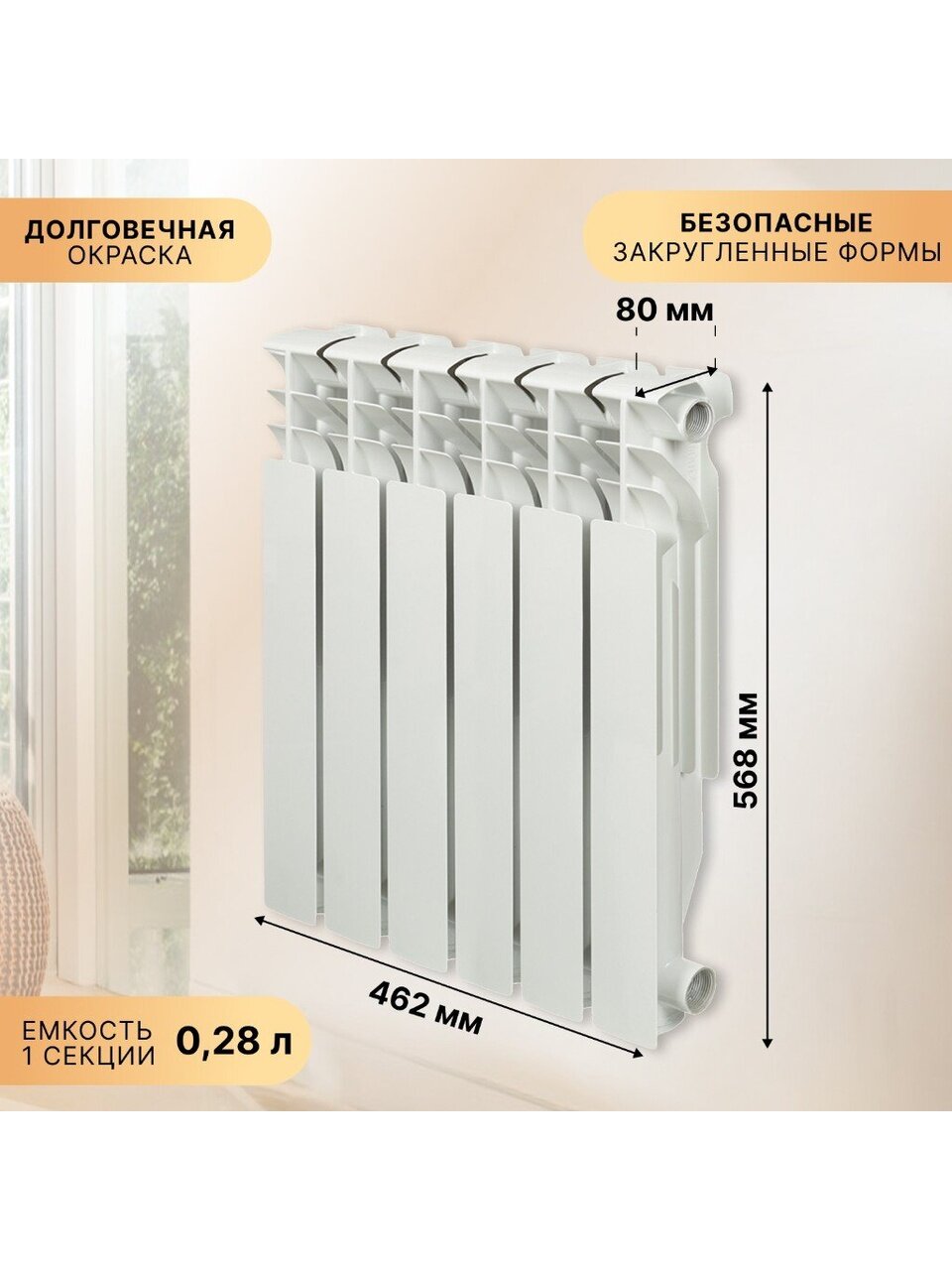 - Объем одной секции: 0.28 л.