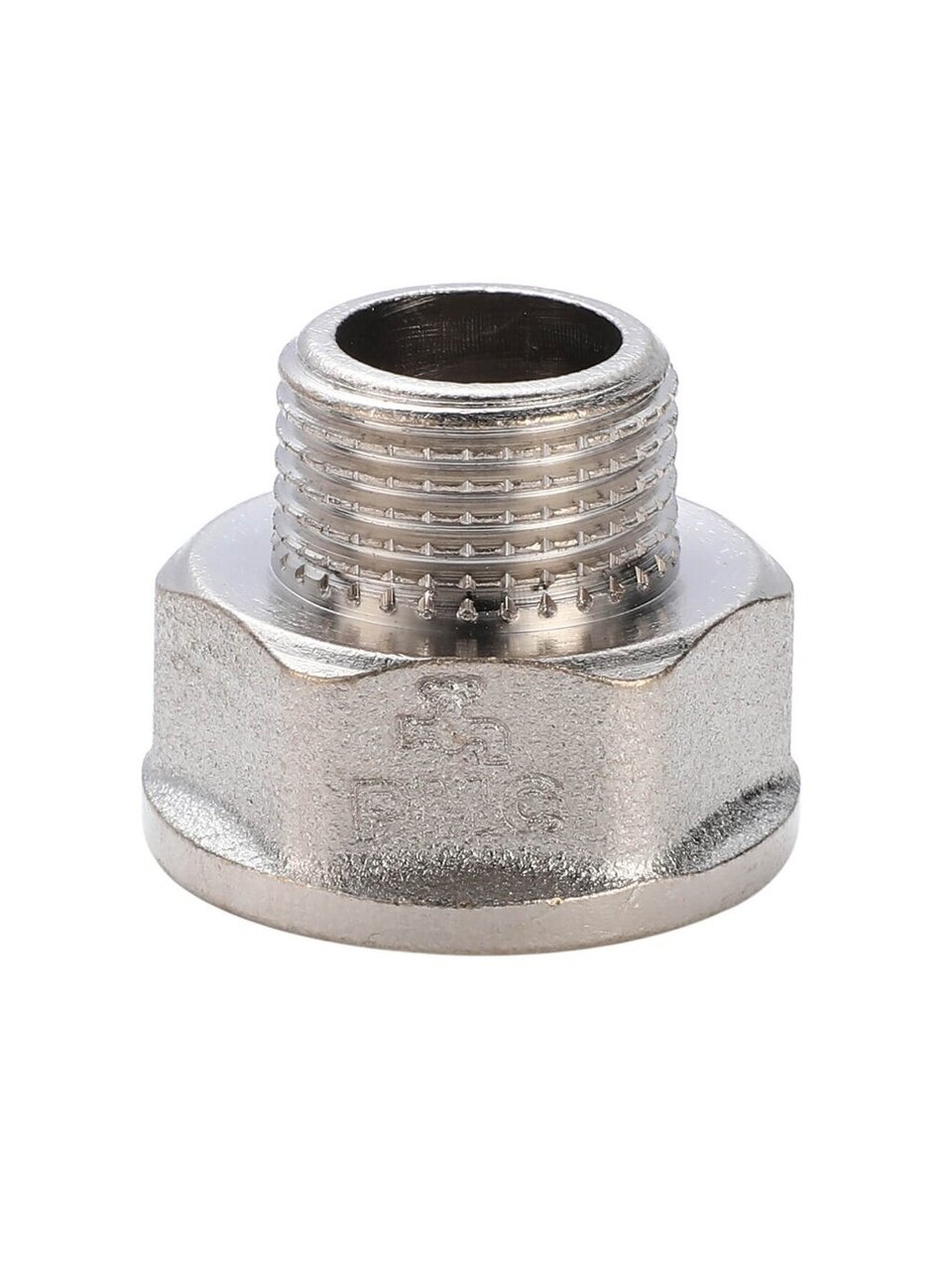 Переходник оснащён внутренней и наружной резьбой (г-ш), что позволяет соединять трубы разного диаметра (1/2" и 3/8") быстро и герметично.
