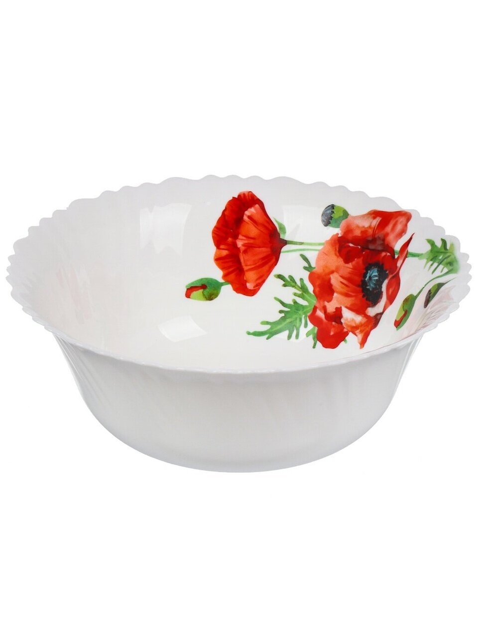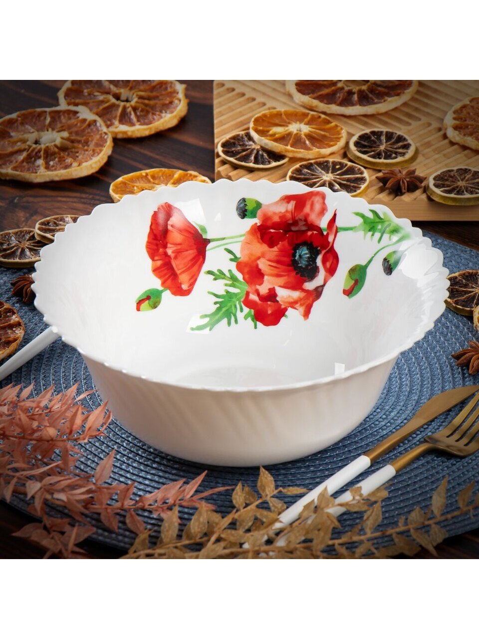 Салатник из стеклокерамики Daniks "Алый мак" 23×9 см, 2 л — стильный выбор для сервировки, устойчив к царапинам, подходит для СВЧ и посудомоечной машины.