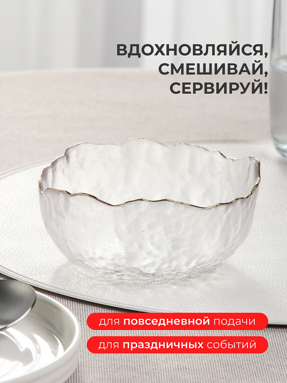 Салатник из стекла «Алмаз» 0.3 л с золотой окантовкой — элегантное решение для сервировки: стильный дизайн, прочное стекло, оптимальный размер для салатов и закусок.
