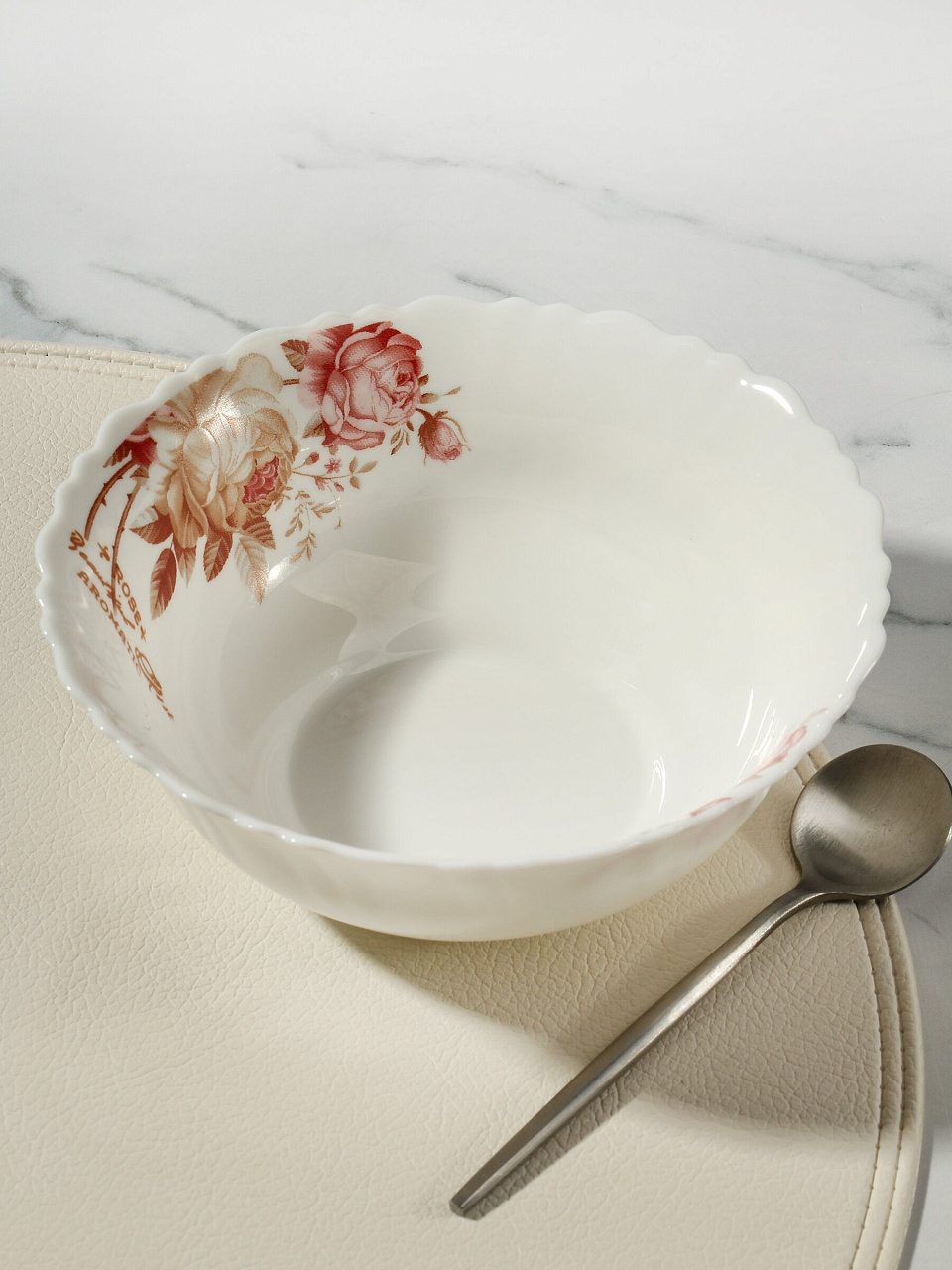 Салатник стеклокерамика, круглый, 15 см, 0.44 л «Шарм» — удачный выбор для тех, кто ищет недорогую и долговечную посуду для ежедневного использования. Лёгкая и прочная стеклокерамика устойчива к царапинам, не впитывает запахи и легко моется в посудомоечной машине. Благодаря белому цвету и цветочному рисунку салатник гармонично впишется как в классическую, так и в современную кухню.