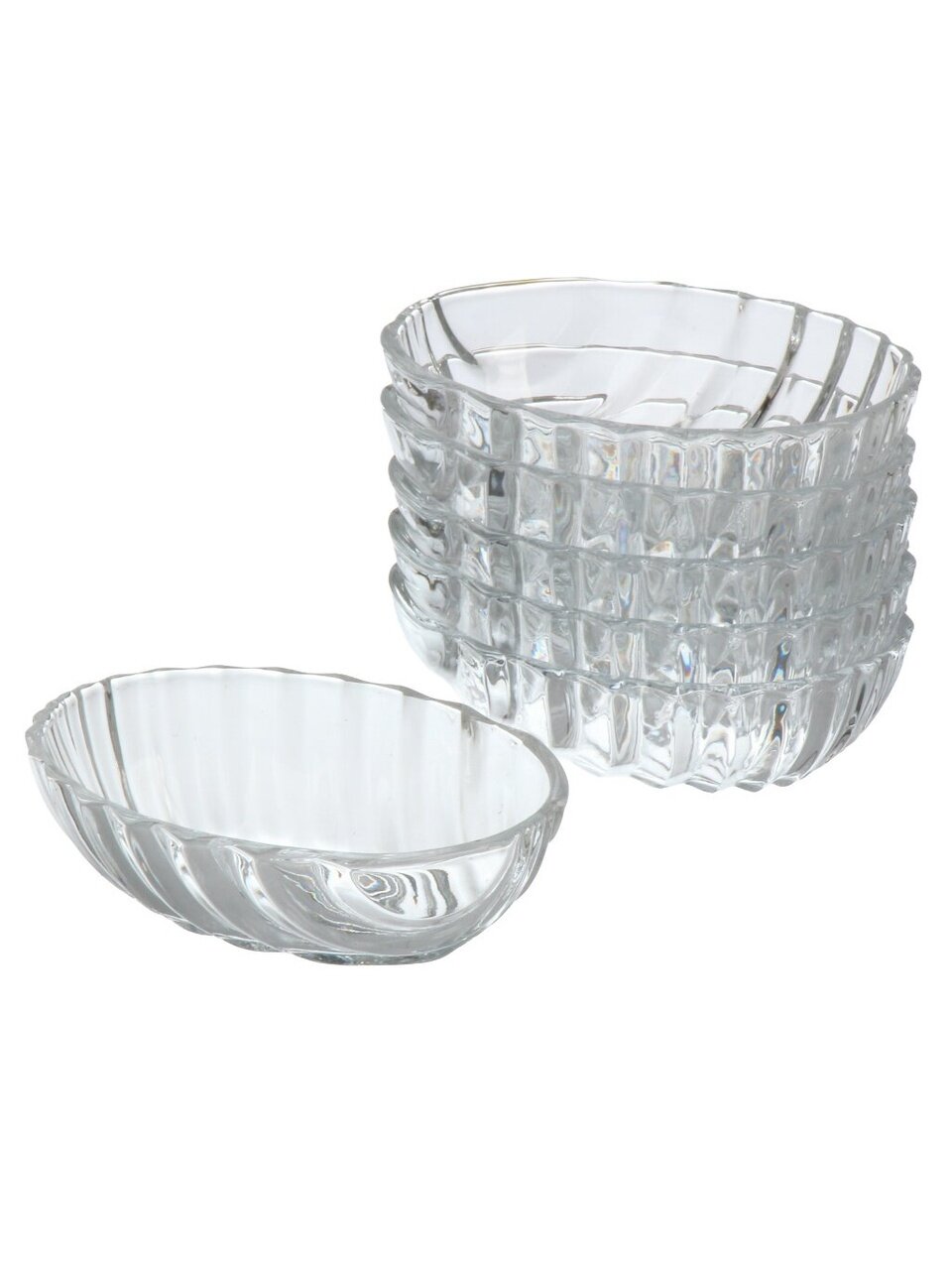 Салатники из стекла Kaveh Santa — набор из 6 овальных мисок 14×10×4,5 см: универсальное решение для сервировки и хранения, прочное стекло, легко мыть