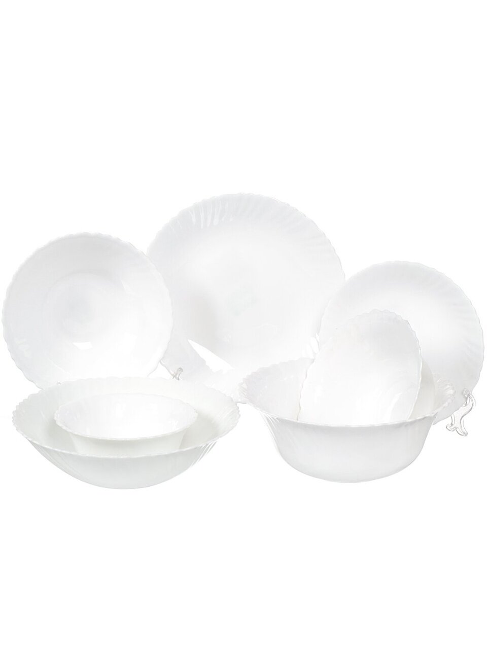 Диаметр 19 см, высота 6 см, объём 0.7 л, вес 0.3 кг, круглая форма, белый цвет, материал — стеклокерамика.
