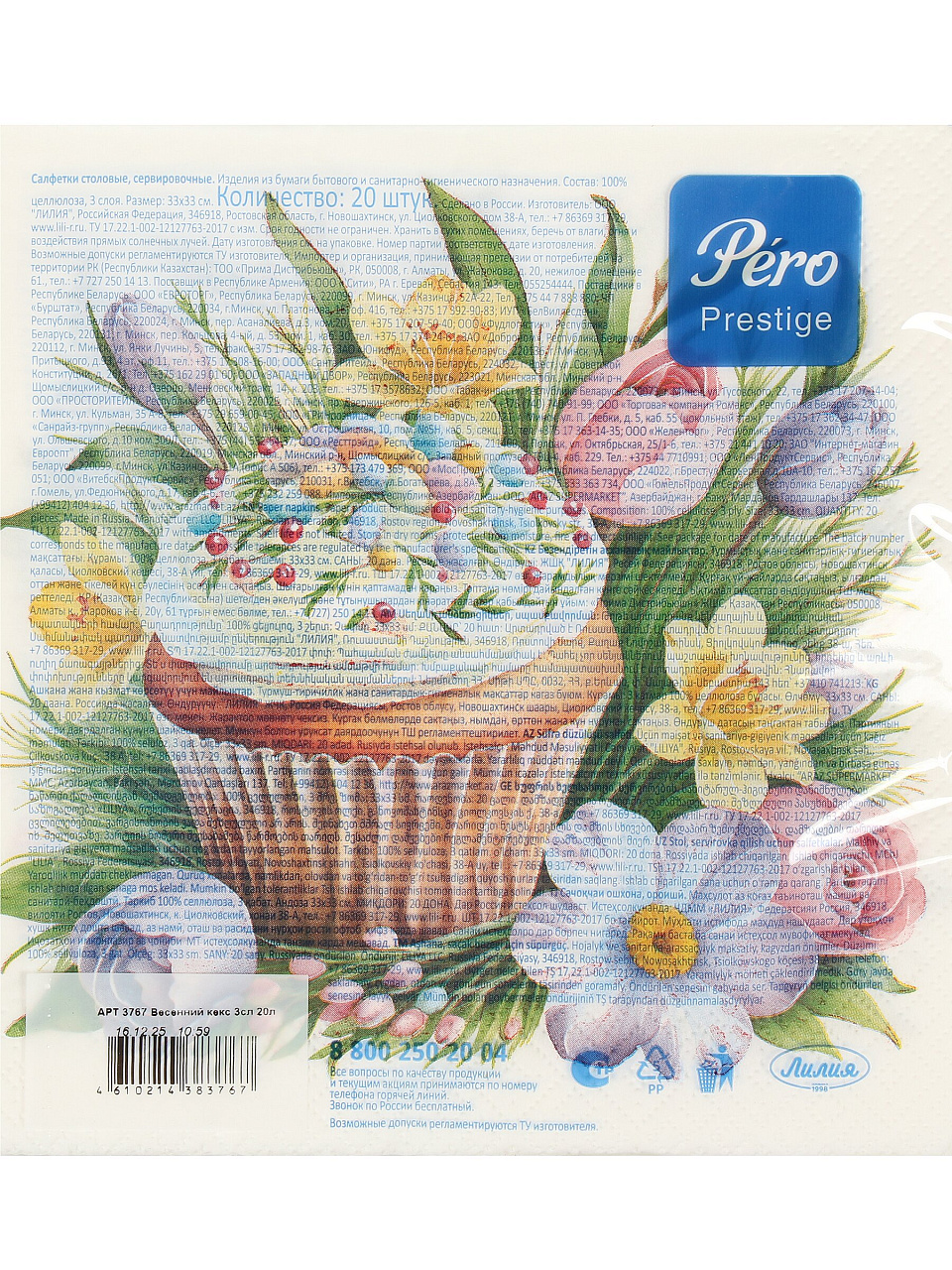 Вы можете приобрести «Салфетки Pero, Prestige Весенний кекс, 20 шт, 3 сл, 33х33 см, 3767» и другие товары в нашем интернет-магазине в Твери по низким ценам и с бесплатным самовывозом.