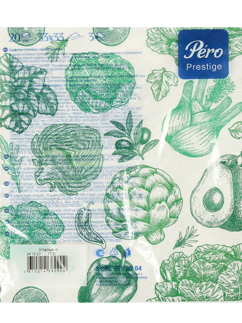 Салфетки Pero Prestige Итальяно 3 слоя, 20 шт — стиль и практичность для дома и праздника. Размер 33х33 см, премиум-качество по выгодной цене.