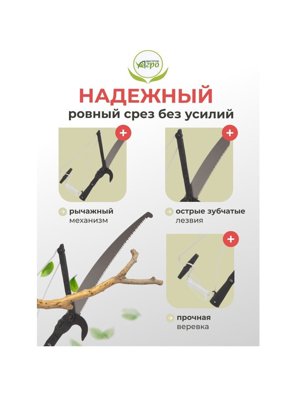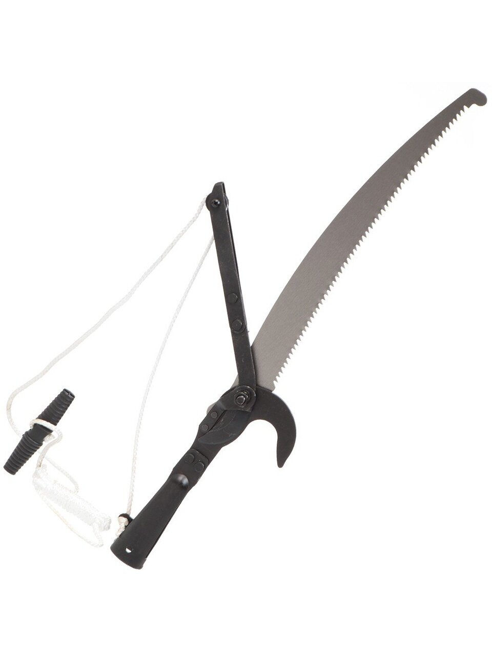 Предназначен для обрезки веток деревьев на высоте. Очень удобен для резки веток в труднодоступных местах. Металлический, комплектуется шнуром и ножовкой, без черенка, диаметр тулейки 30 мм. Длина изделия в сборе с ножовкой 530 мм.