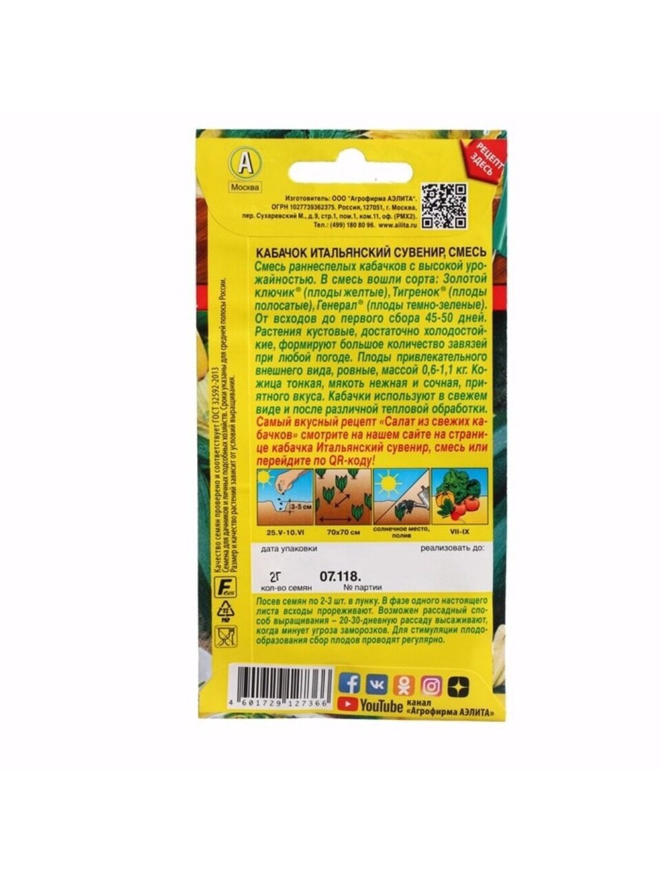 Вы можете приобрести «Семена Кабачок, Итальянский сувенир, 2 г, цветная упаковка, Аэлита» и другие товары в нашем интернет-магазине в Таганроге по низким ценам и с бесплатным самовывозом.
