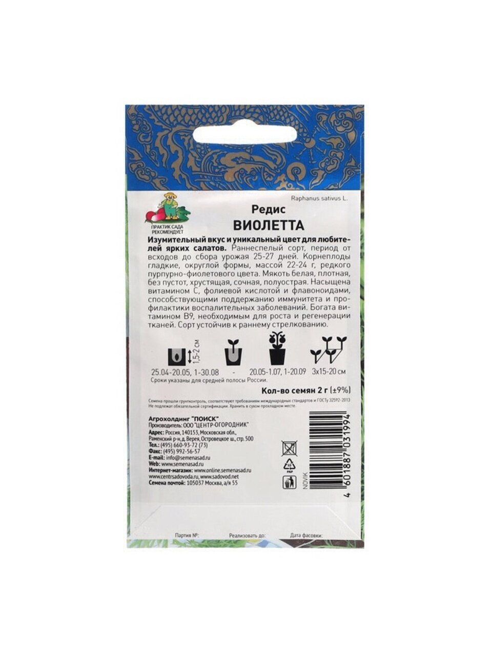 Вы можете приобрести «Семена Редис, Виолетта, 2 г, Восточный деликатес, цветная упаковка, Поиск» и другие товары в нашем интернет-магазине в Воронеже по низким ценам и с бесплатным самовывозом.