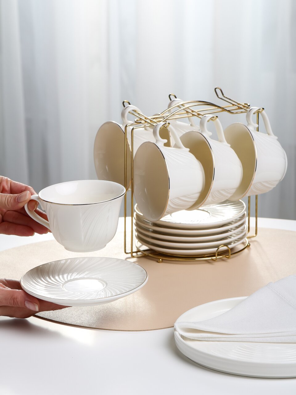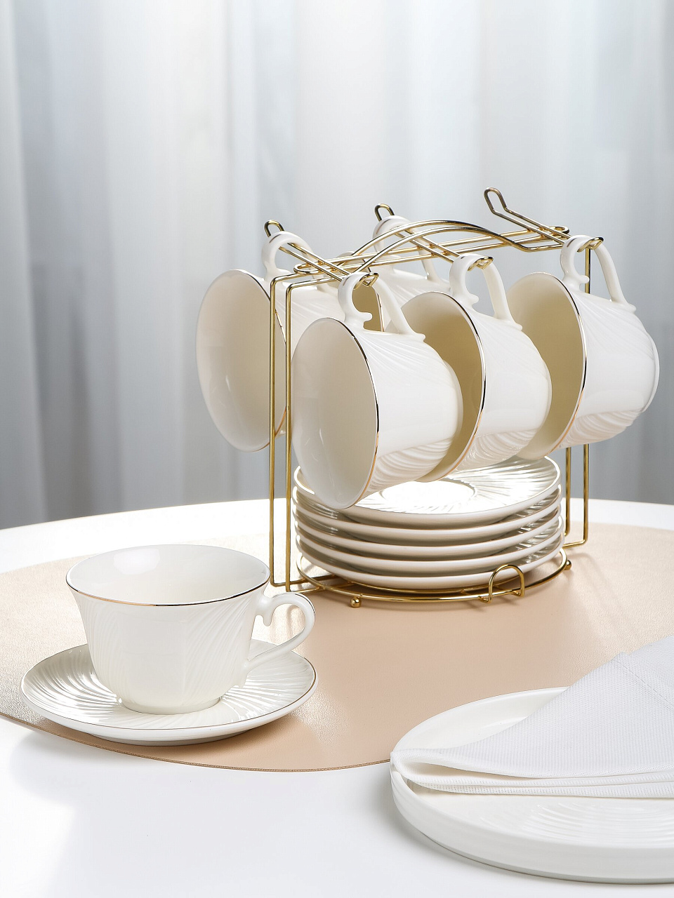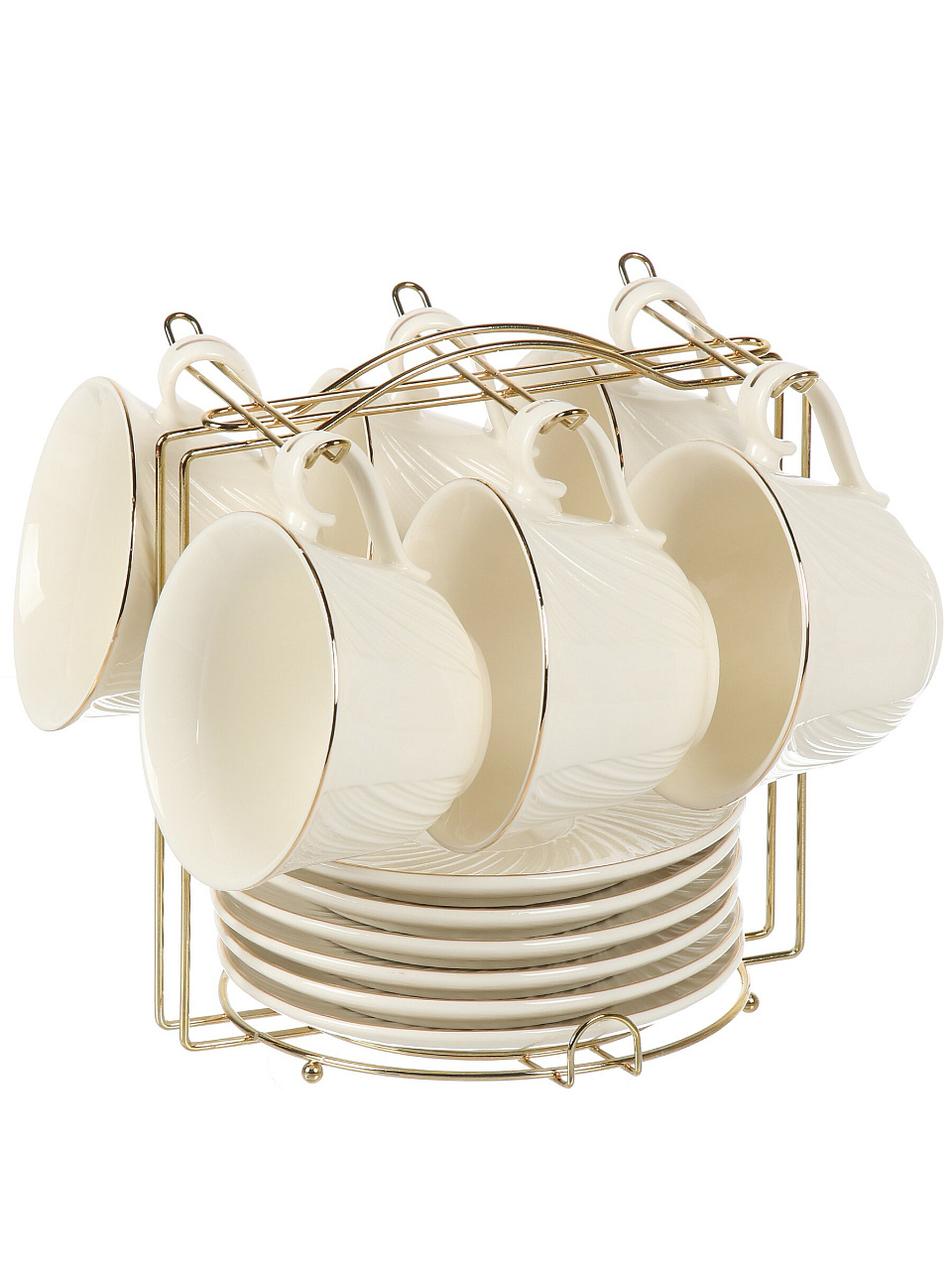 Набор чайный фарфор, 12 предметов, на 6 персон, 220 мл, металлическая подставка, ТМ Глория, Bonjart, 202346, подарочная упаковка