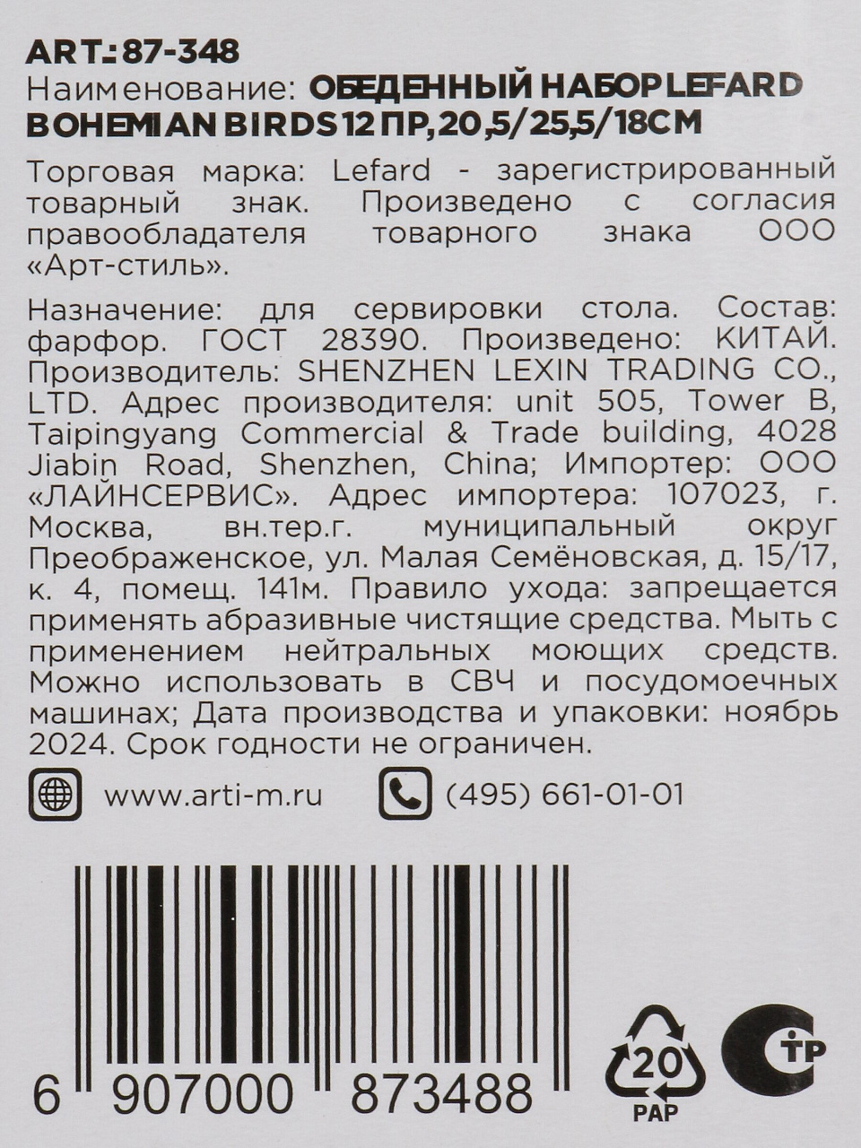Вы можете приобрести «Сервиз столовый фарфор, 12 предметов, на 4 персоны, Lefard, Bohemian birds, 87-348» и другие товары в нашем интернет-магазине в Иваново по низким ценам и с бесплатным самовывозом.