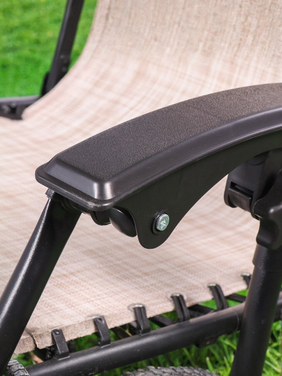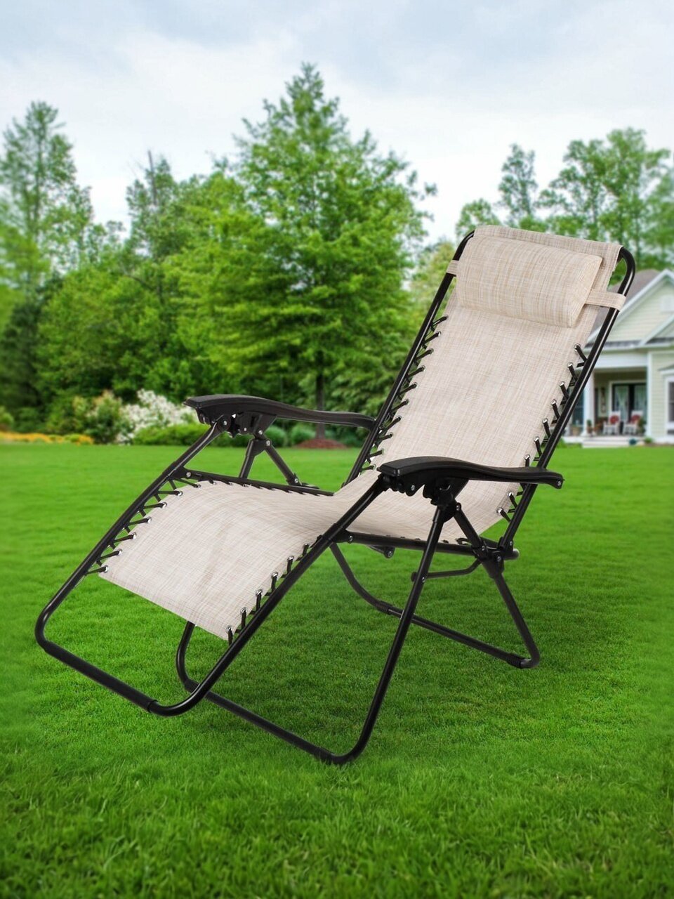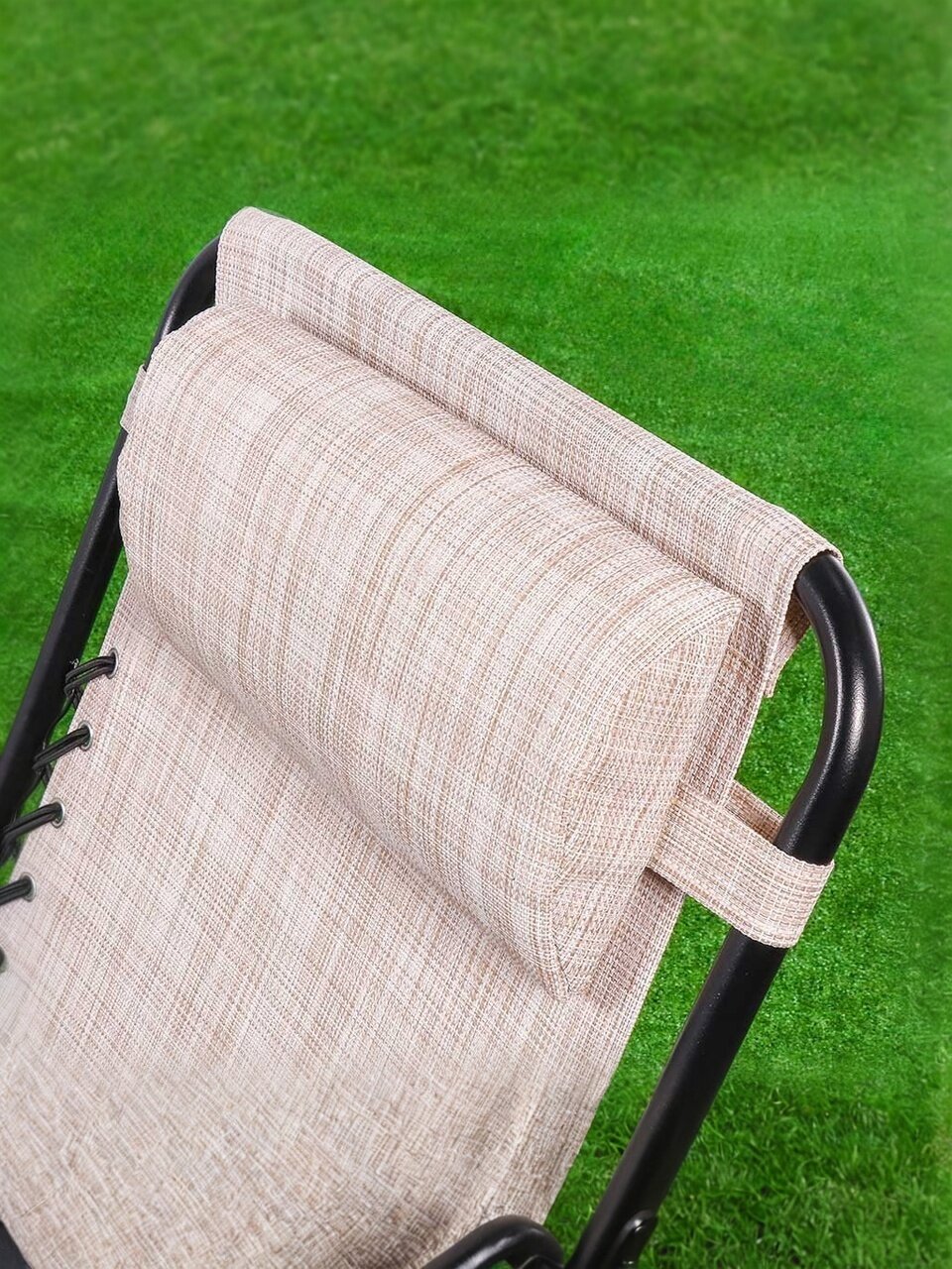 - Металлический каркас обеспечивает высокую устойчивость к внешним воздействиям, позволяя использовать шезлонг в любых условиях.
