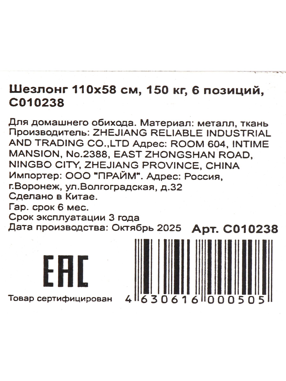 Шезлонг 110х58 см с 6 позициями: выдерживает до 150 кг, идеален для отдыха на даче, дома и в саду. Надёжность, комфорт и стиль по доступной цене.