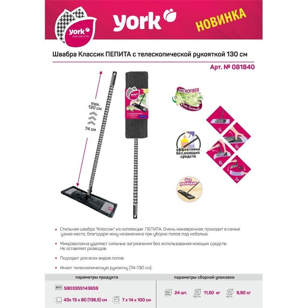 Вы можете приобрести «Швабра плоская, микрофибра, 130 см, черная, телескопическая ручка, черная, Классик, York, Стайл Pepita, 081840» и другие товары в нашем интернет-магазине в Ставрополе по низким ценам и с бесплатным самовывозом.