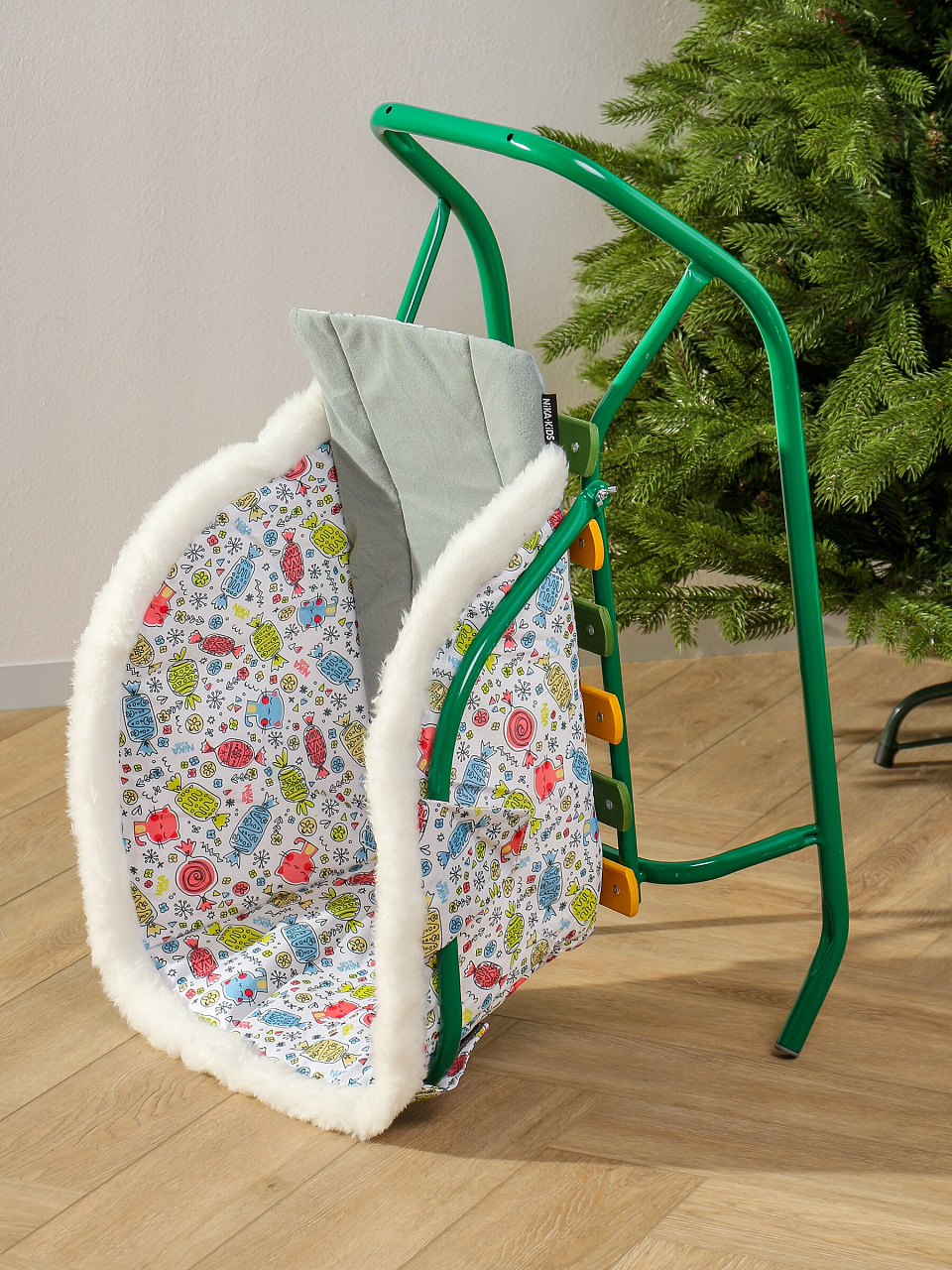 Матрасик универсальный для санок Nika 68х29 см: комфорт и тепло во время зимних прогулок, яркий дизайн «конфетки», подходит для любых санок и колясок.