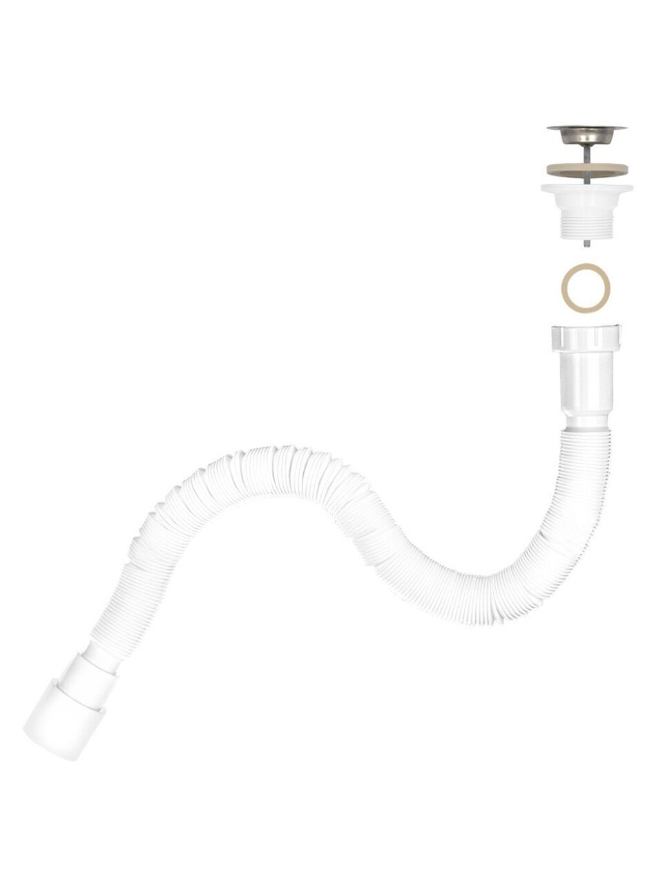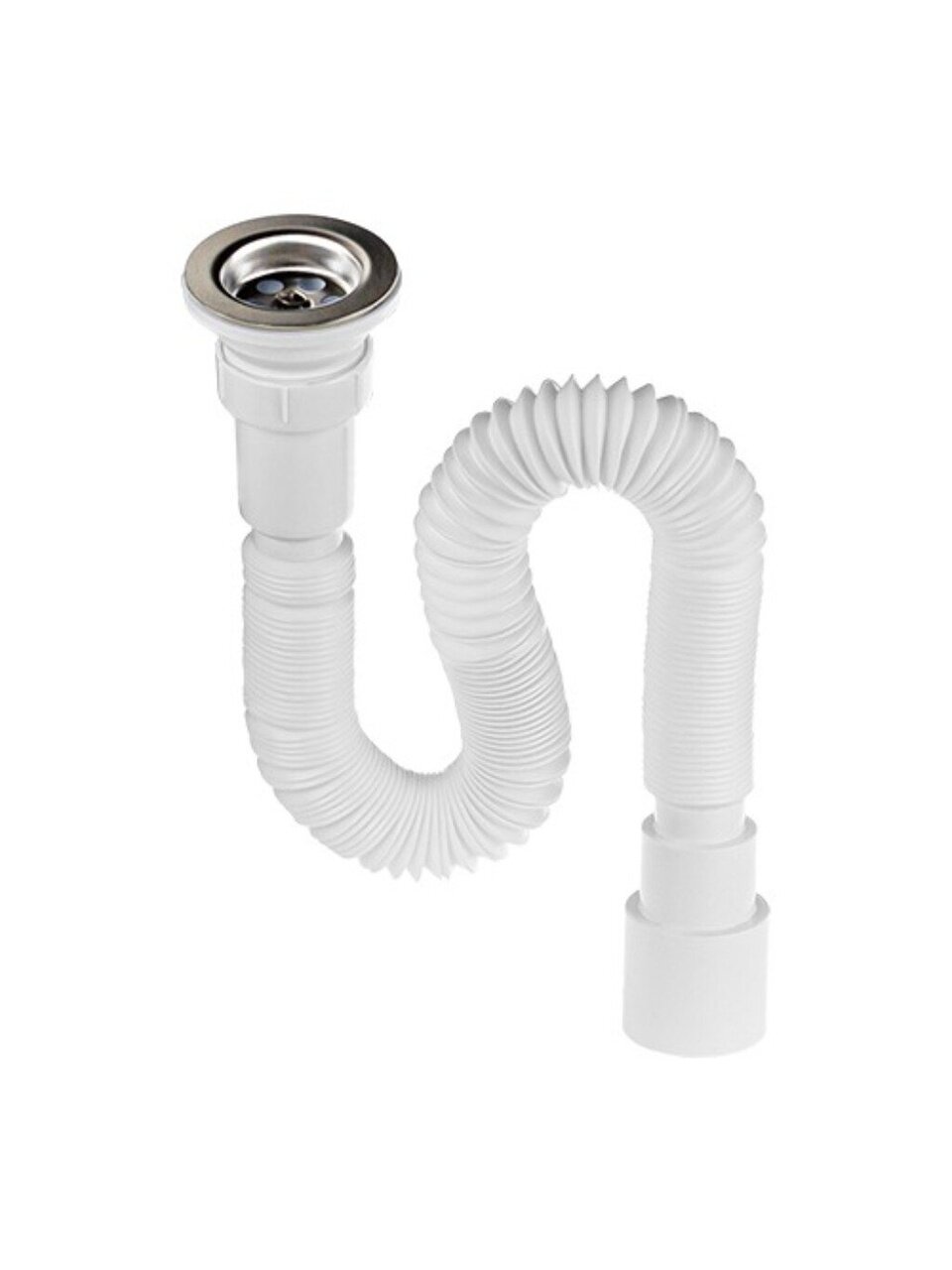 Гофросифон применяется для соединения раковины умывальника или кухонной мойки с канализационной системой. Он имеет разборный выпуск с резьбой для установки 1 1/2". Решетка выпуска изготовлена из нержавеющей стали, диаметр 70 мм, толщина 0.5 мм. Подходит для умывальников и моек с диаметром сливного отверстия 48-52 мм.