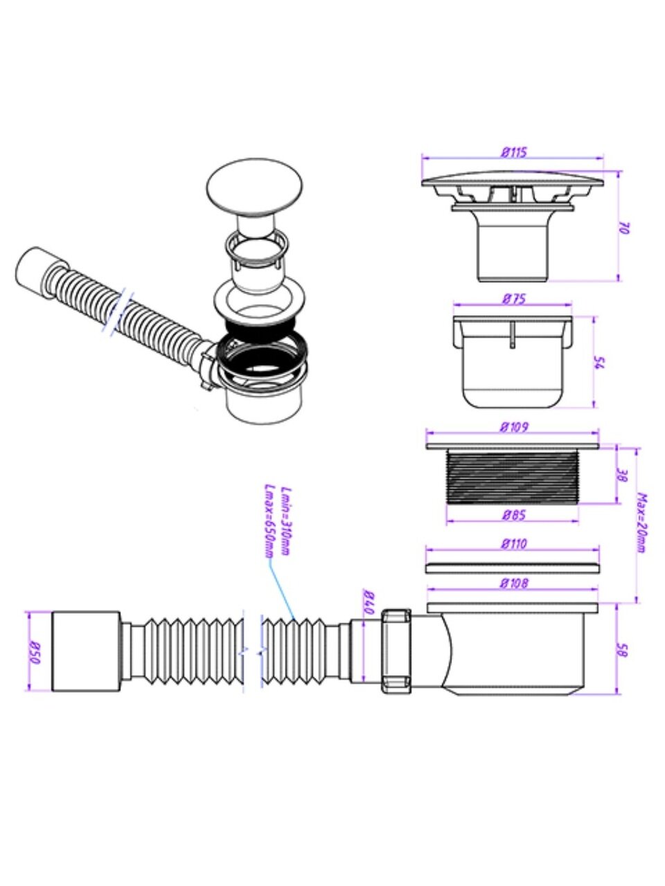 Сифон прост в установке и выполняет свою главную функцию - формирование гидрозатвора для отсечения неприятных запахов из канализации. Гибкая гофрированная труба предназначена для слива воды из душевого поддона. Она герметично соединяет сифон с канализационной сетью.