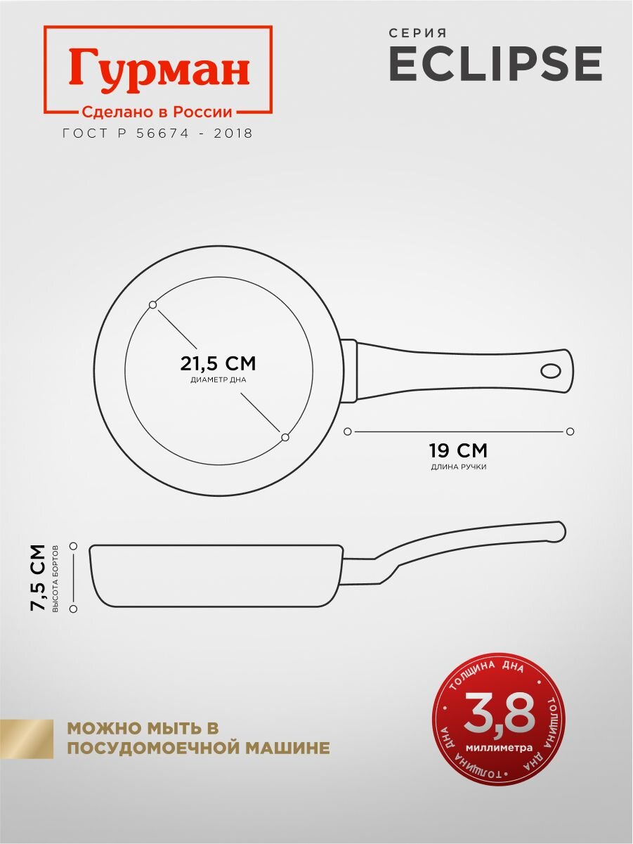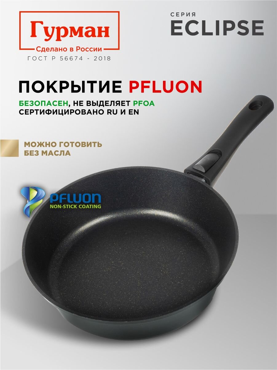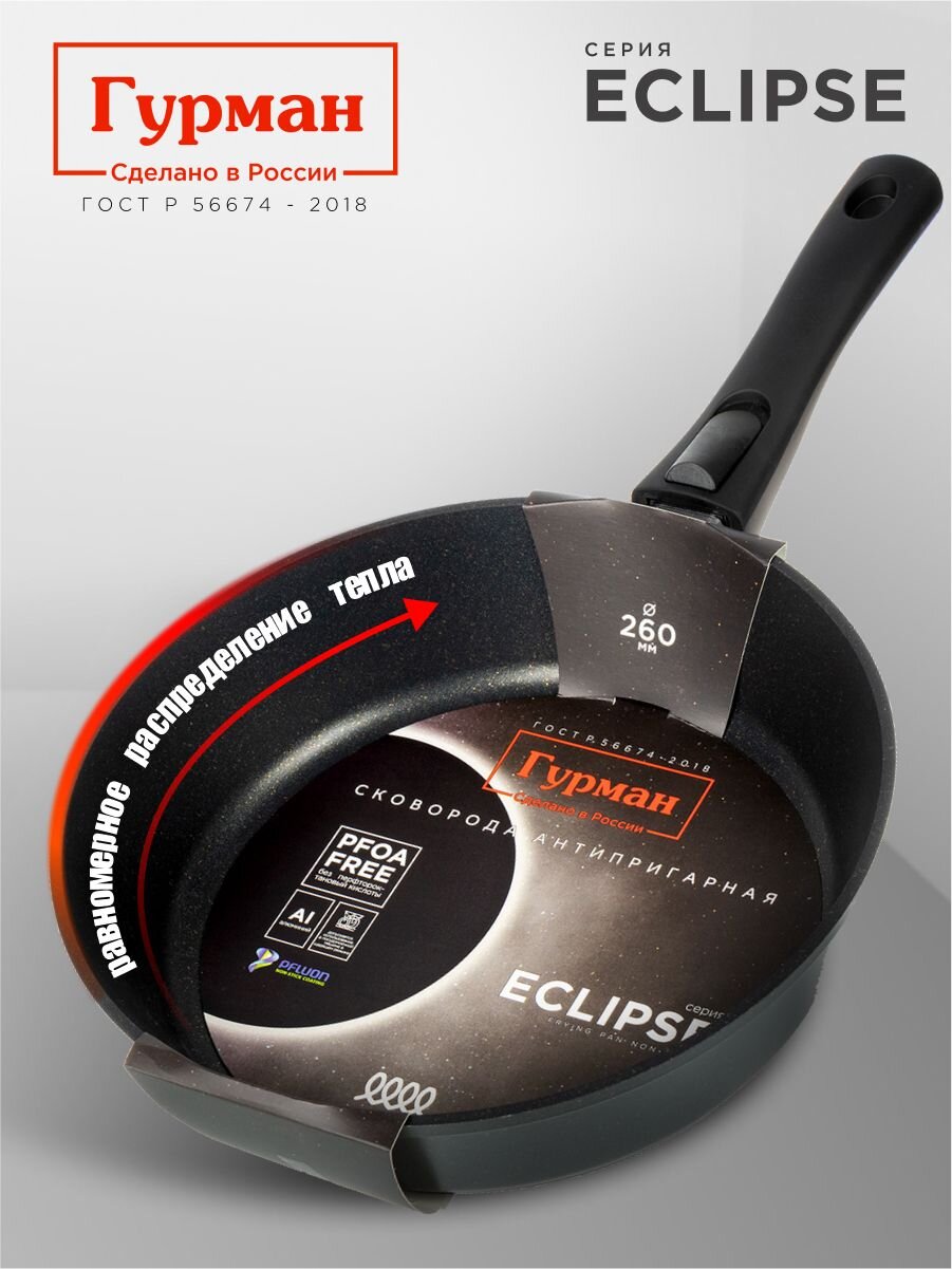Закажите сковороду Гурман Eclipse 26 см с выгодной гарантией 36 месяцев — получите универсальный инструмент для вкусных и полезных блюд уже сейчас.