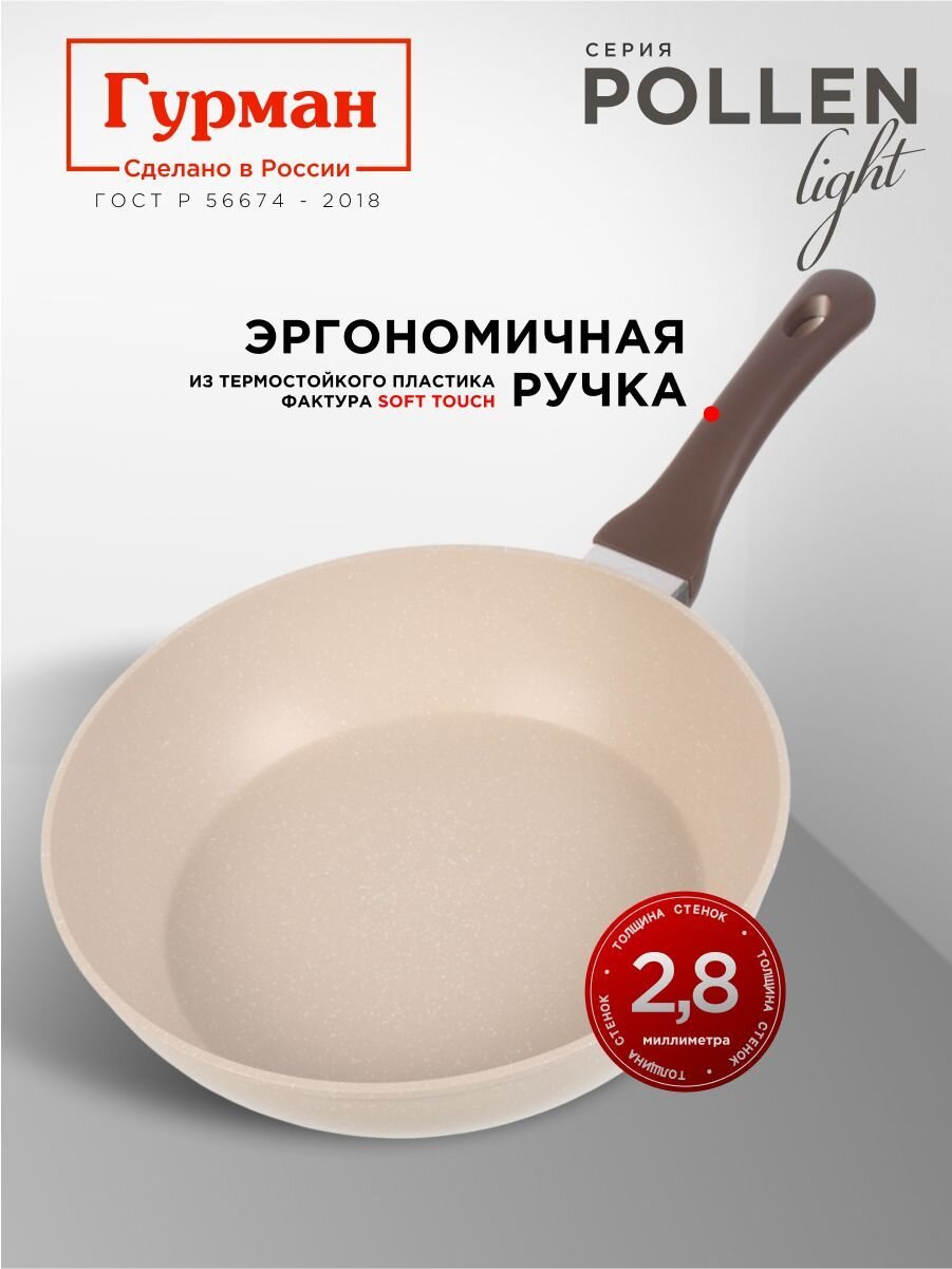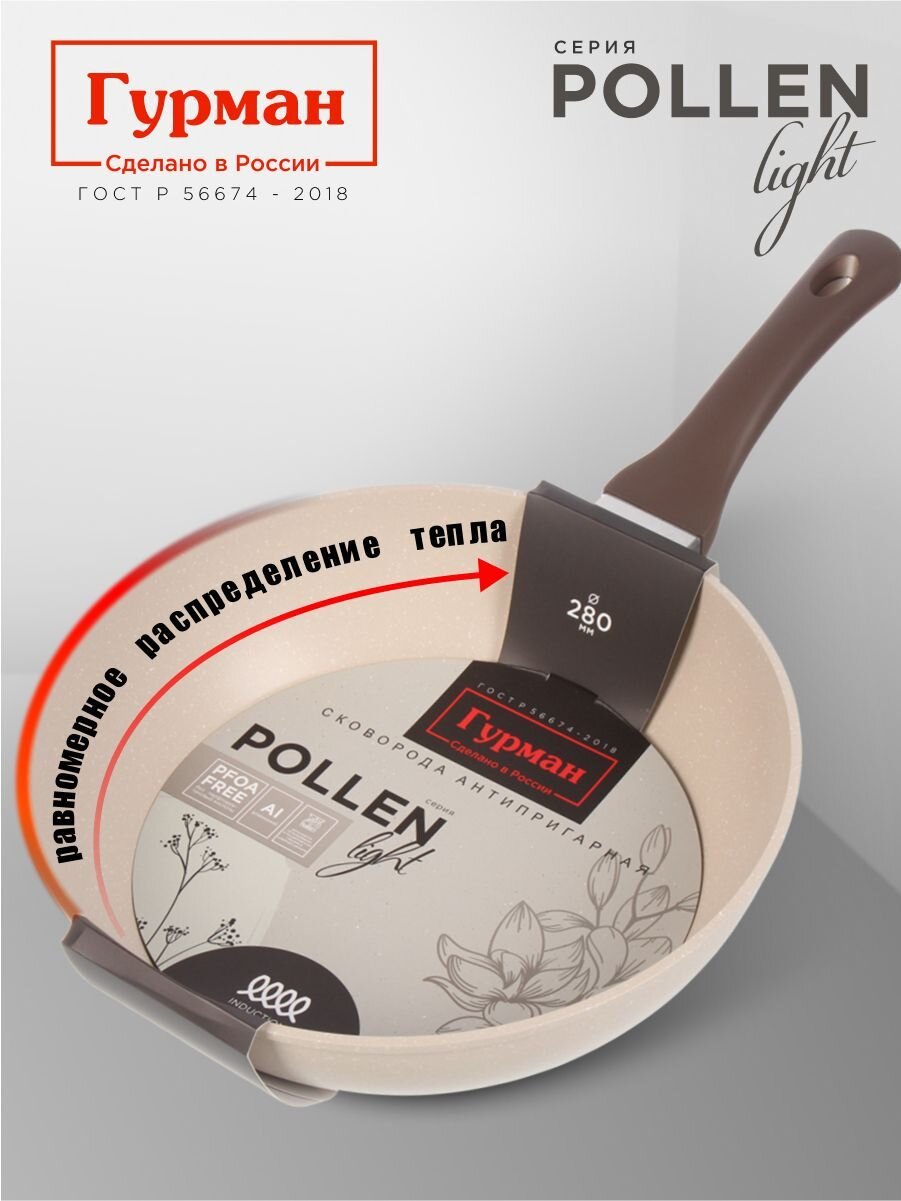 Вы можете приобрести «Сковорода литой алюминий, 28 см, антипригарное покрытие, Гурман, Pollen light, индукция, ГМ2801ПЛИ» и другие товары в нашем интернет-магазине в Борисоглебске по низким ценам и с бесплатным самовывозом.