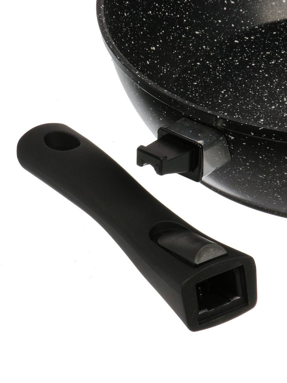 Съёмная ручка облегчает хранение, позволяет использовать сковороду в духовке и делает мойку удобнее. Это особенно актуально для дачи и компактных кухонь.