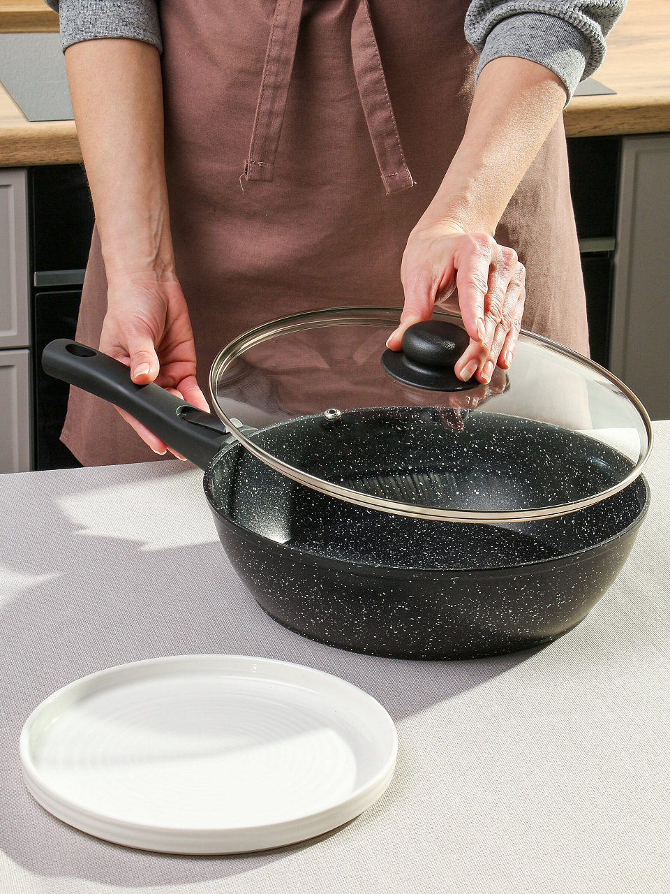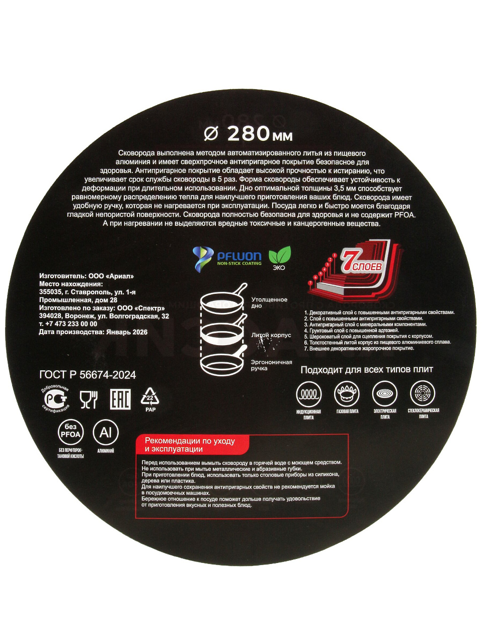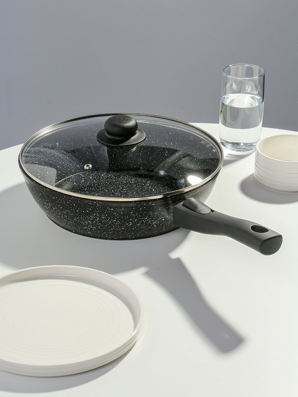 Закажите алюминиевую сковороду 28 см с антипригарным покрытием прямо сейчас — получите универсальную посуду с гарантией 36 месяцев и быстрой доставкой по России.