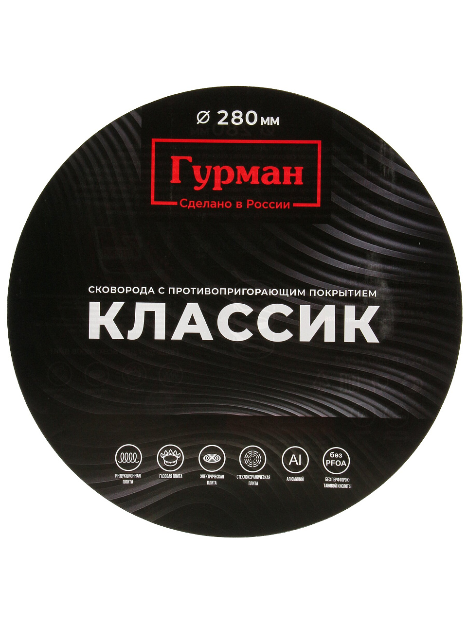 Обратите внимание на маркировку «для индукции». Модель «Гурман Классик» с алюминиевым корпусом и специальным дном подходит для индукционных, газовых, электрических и стеклокерамических плит. Диаметр дна — 22,4 см.