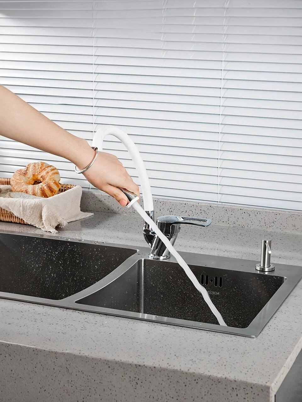 Гибкий излив облегчает мытье крупной посуды, наполнение высоких кастрюль, а также помогает поддерживать чистоту раковины, экономя ваше время и воду.