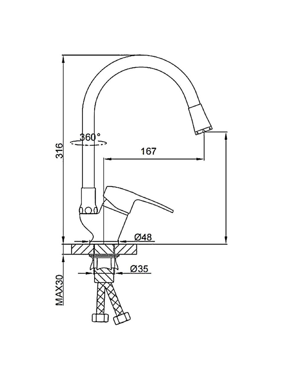 Смеситель для кухни Frud R41055-4 с гибким изливом — оптимальное решение для тех, кто ищет практичность и стиль. Благодаря однорычажному управлению и аэратору вы легко регулируете напор и температуру воды. Гибкий поворотный излив длиной 16,7 см позволяет мыть даже крупную посуду и наполнять высокие емкости, что делает этот смеситель незаменимым для активной кухни.