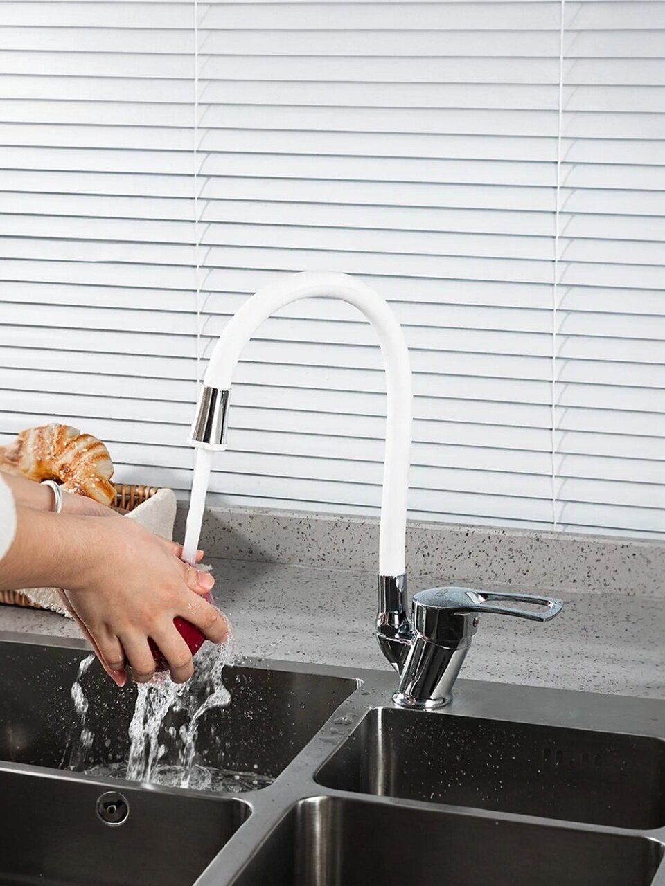 - Гибкий излив — легко направить поток воды туда, где это нужно, экономит время на кухне
