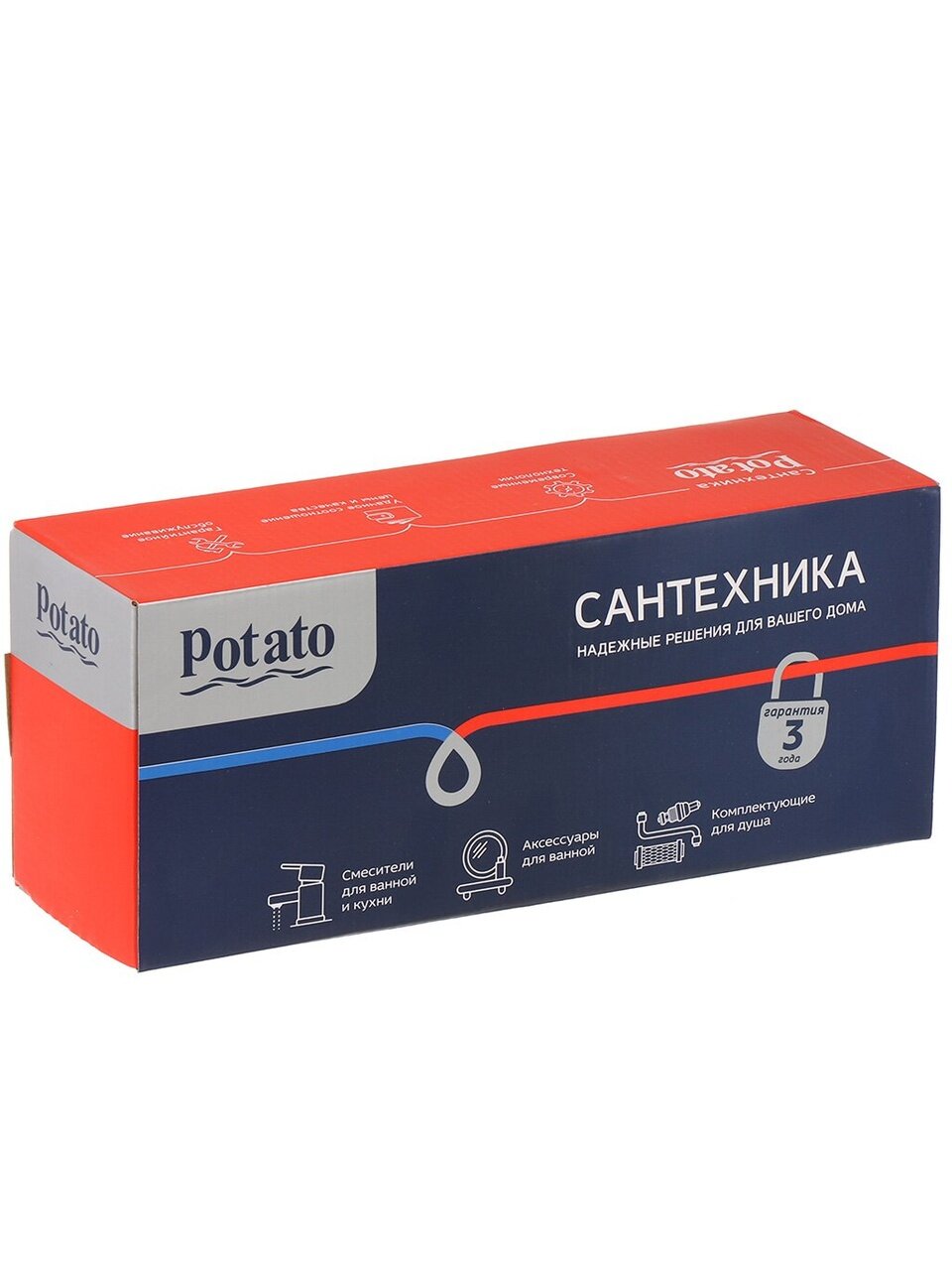 Излив смесителя Potato P2204N — длинный, 38,2 см, что обеспечивает комфортное использование в просторных ваннах и облегчает наполнение ёмкостей.