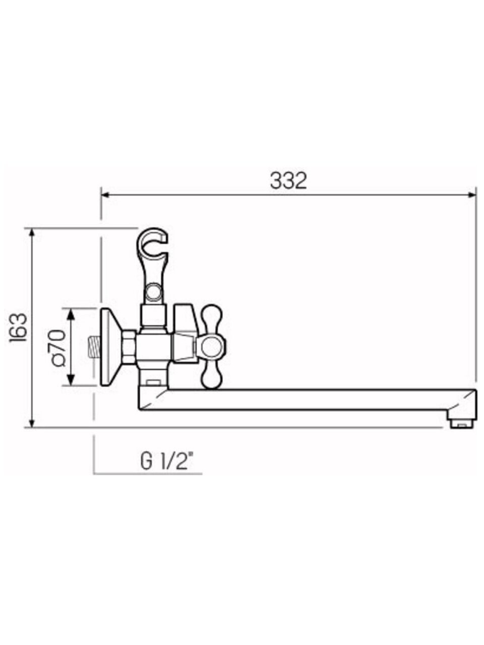 Длина излива — 30 см, монтаж вертикальный, настенный, с межосевым расстоянием 150 мм и стандартной подводкой 1/2".