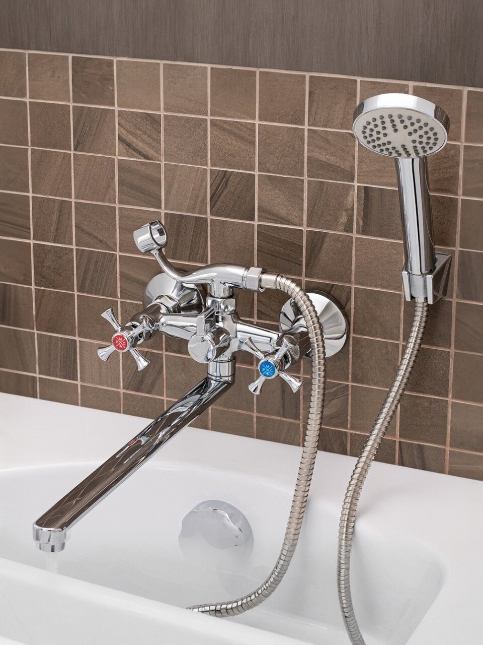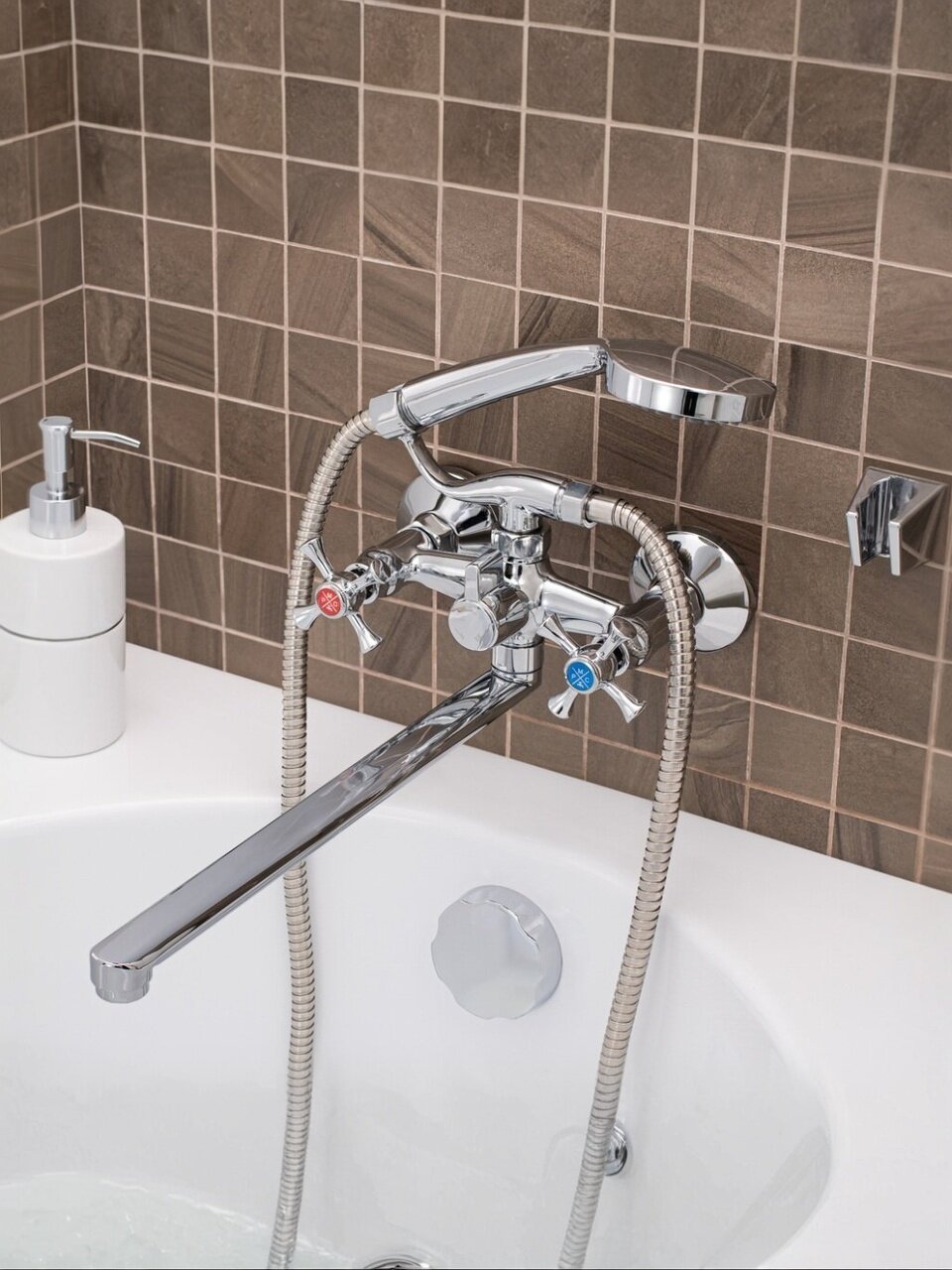 - Поворотный длинный излив 30 см — удобно для наполнения ванны и мытья душем, экономит время