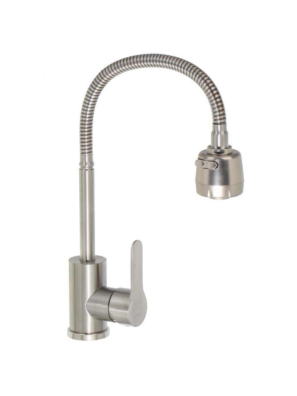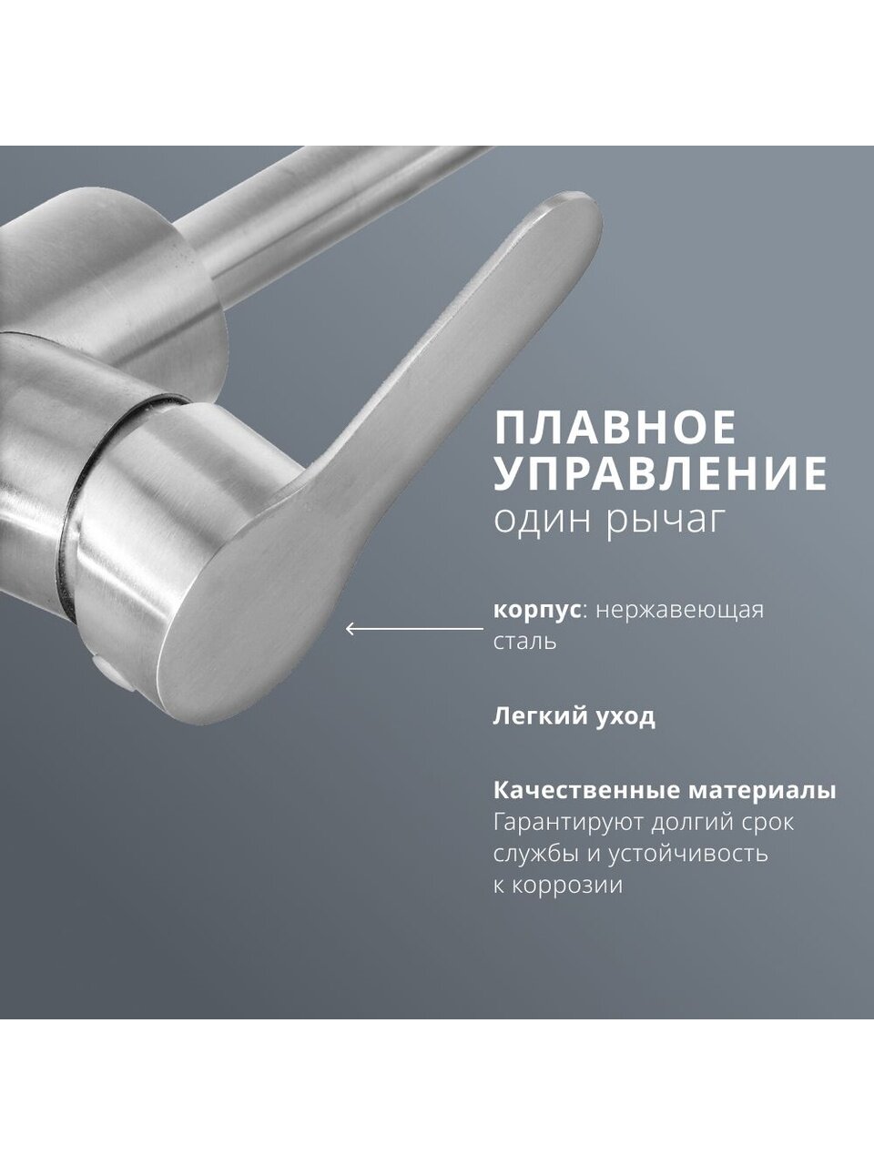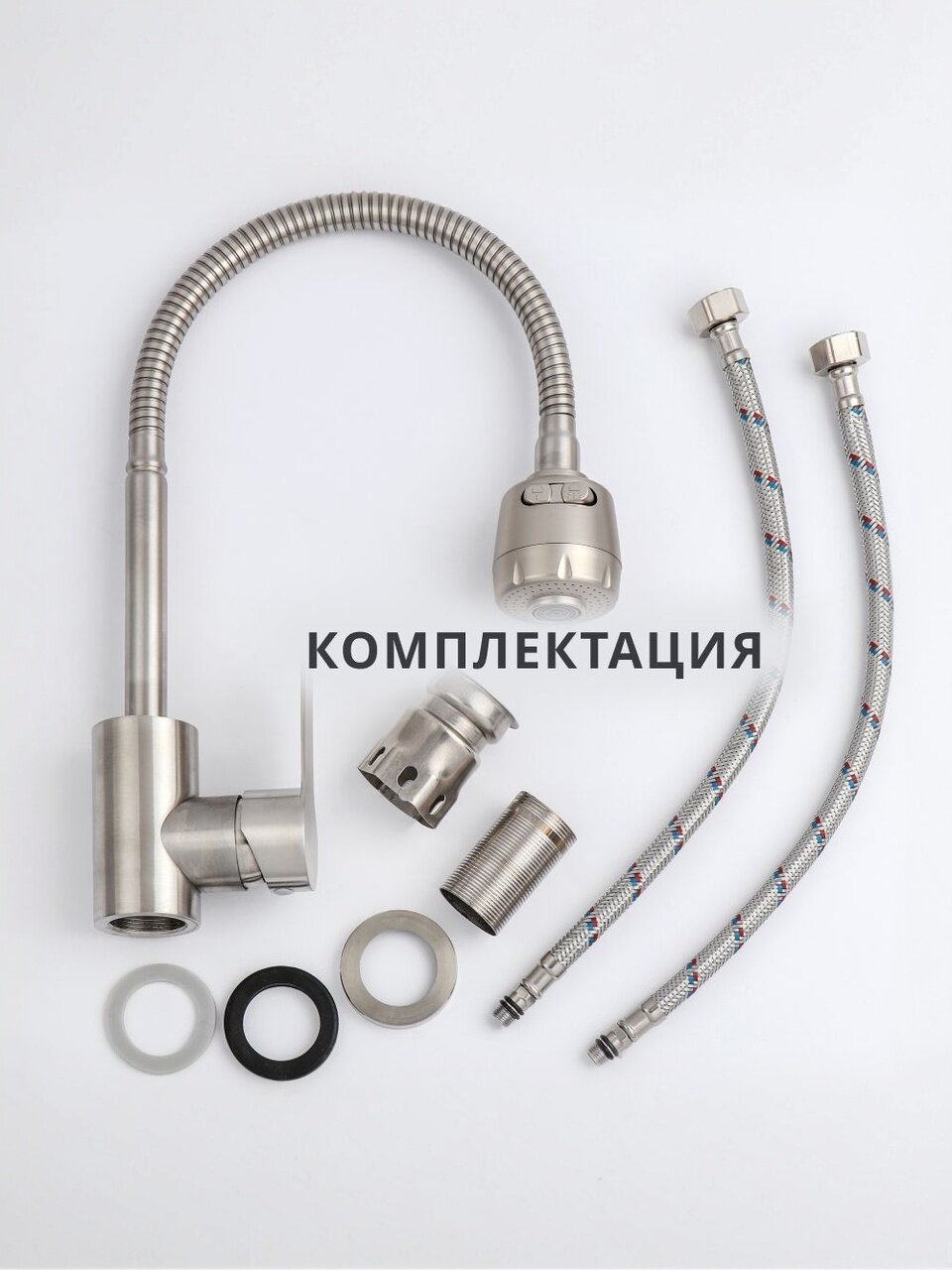 Смеситель для кухни Aqwin с гибким изливом и керамическим картриджем — надежное решение для современной кухни: долговечная нержавеющая сталь, удобство в управлении и стильный сатиновый дизайн.